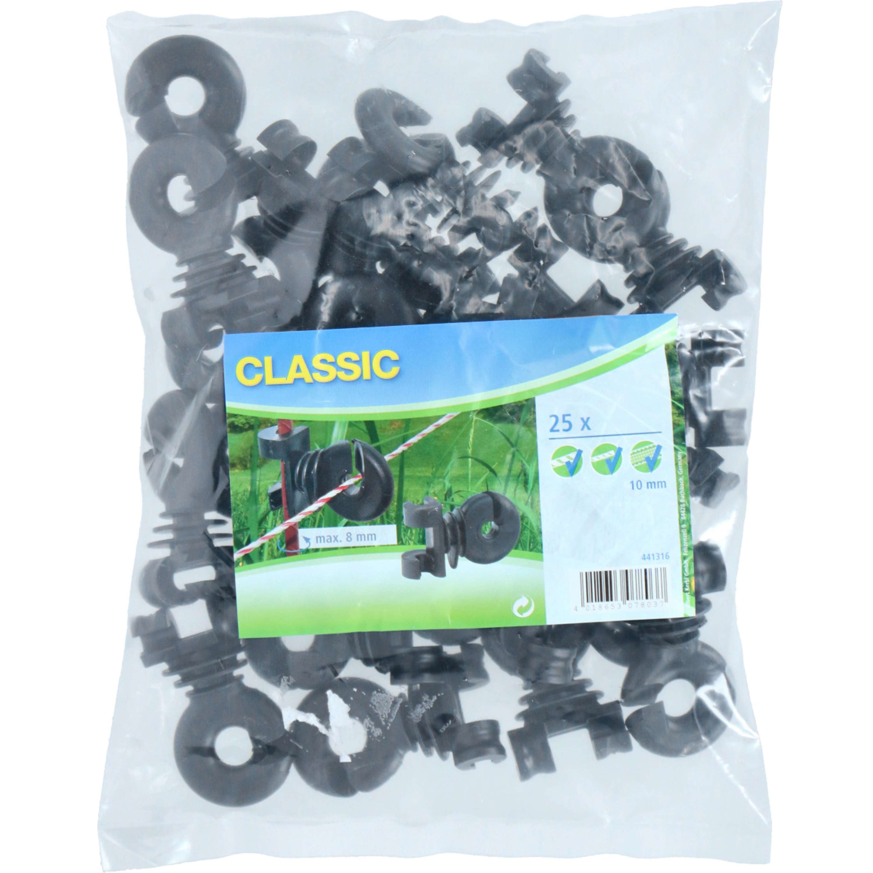 Cet isolateur est spécifiquement conçu pour être utilisé avec les poteaux ronds en acier de 8 mm, garantissant un maintien parfait et sûr.