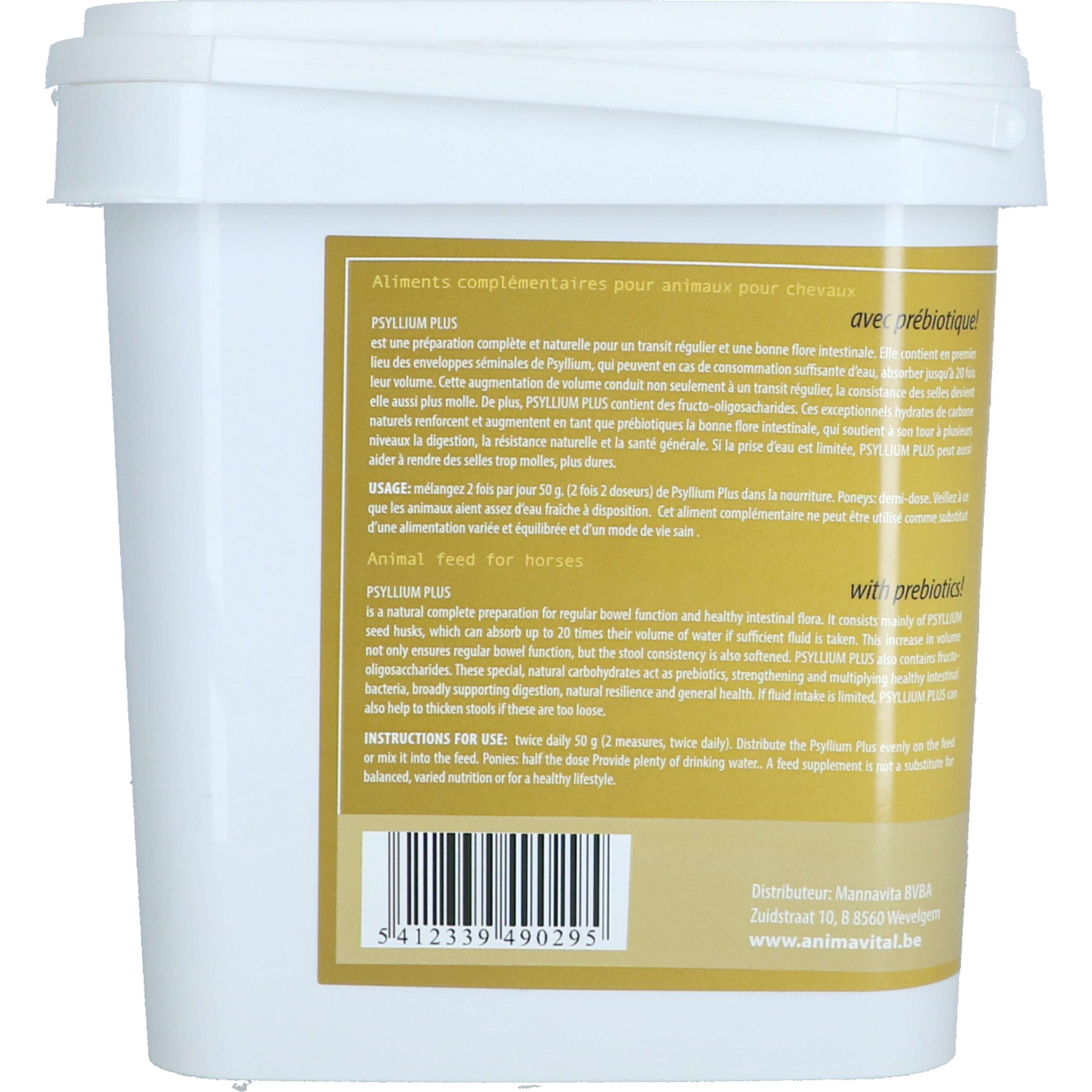 PSYLLIUM PLUS d'ANIMAVITAL est un complément alimentaire naturel et complet pour un transit intestinal régulier et une flore intestinale saine. Il contient principalement des téguments de graines de psyllium, capables d'absorber jusqu'à 20 fois leur volume en eau lorsqu'ils sont administrés avec une quantité suffisante de liquide. Cette augmentation de volume assure non seulement un transit intestinal régulier, mais aussi une consistance plus souple des selles. PSYLLIUM PLUS contient également des fructo-oligosaccharides à chaîne courte. Ces glucides naturels uniques, agissant comme prébiotiques, renforcent et développent une flore intestinale saine, contribuant ainsi à une bonne digestion, à une meilleure résistance naturelle et à une santé générale optimale. En cas d'apport hydrique limité, PSYLLIUM PLUS peut également aider à épaissir les selles trop molles.