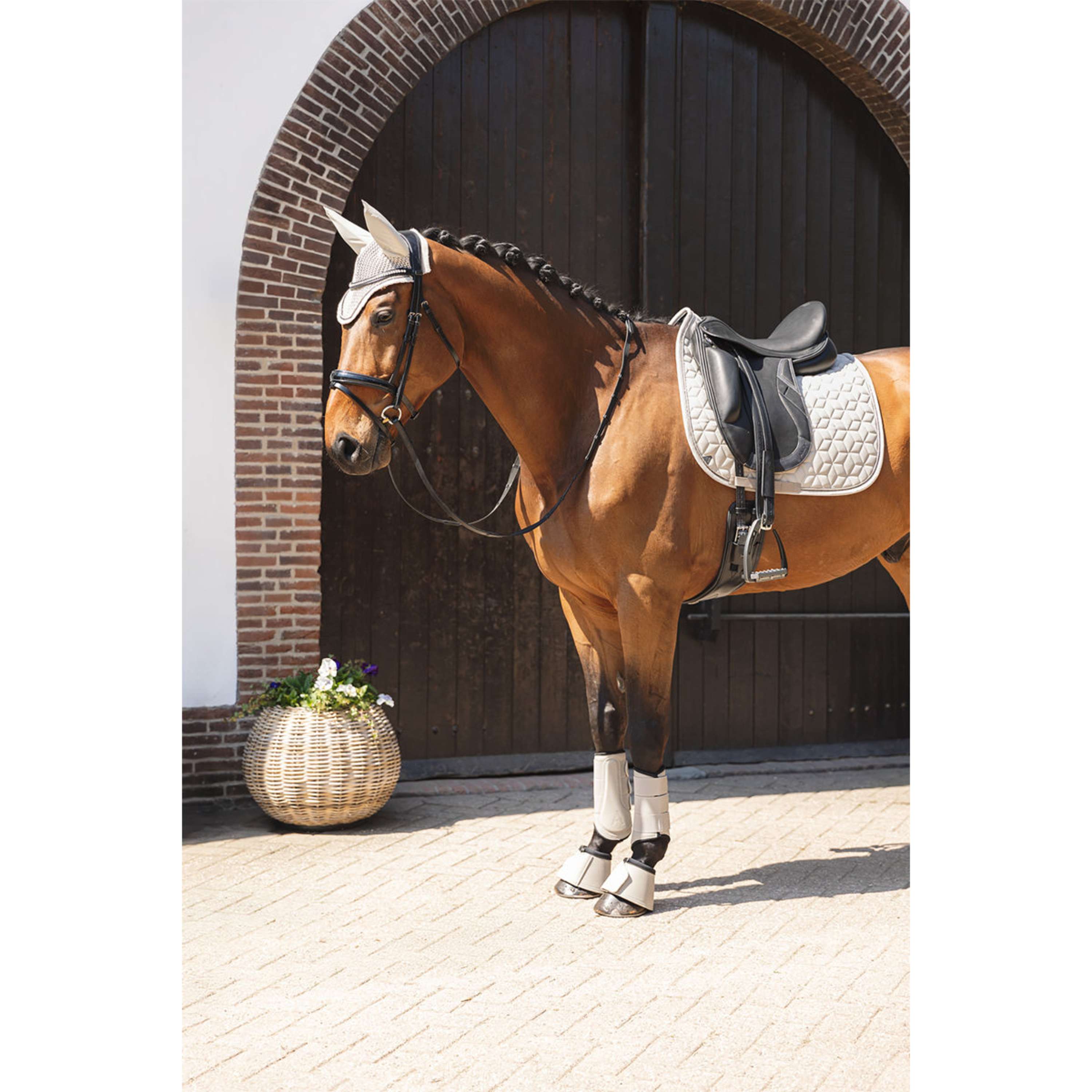 cheval Décoré d’un cordon métallique argenté foncé subtil et d’une corde torsadée de couleur