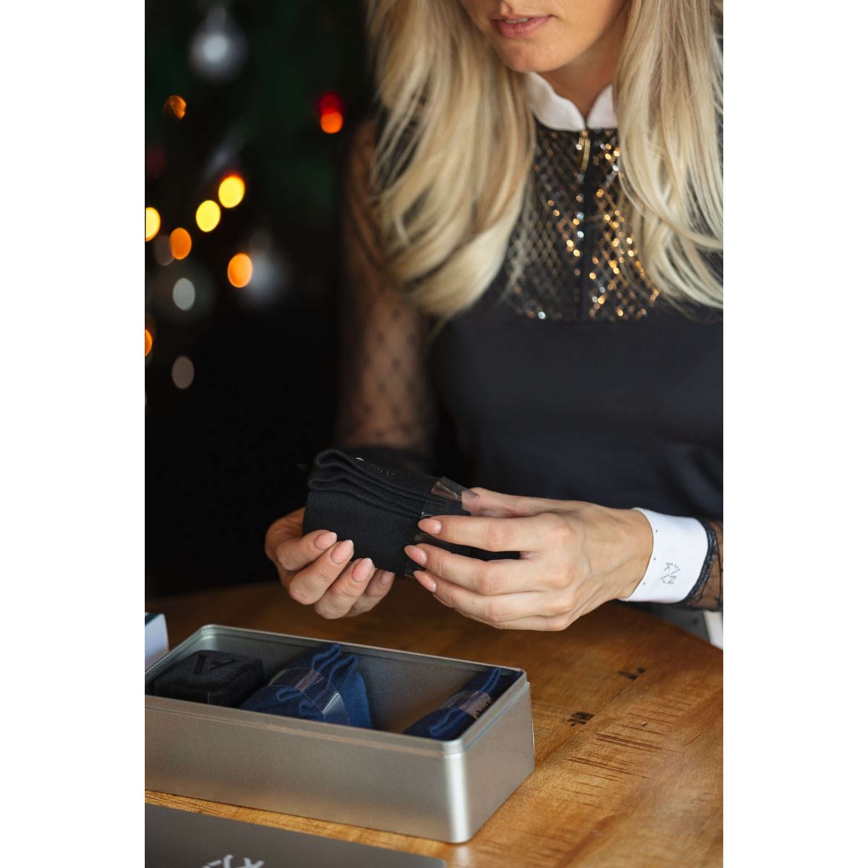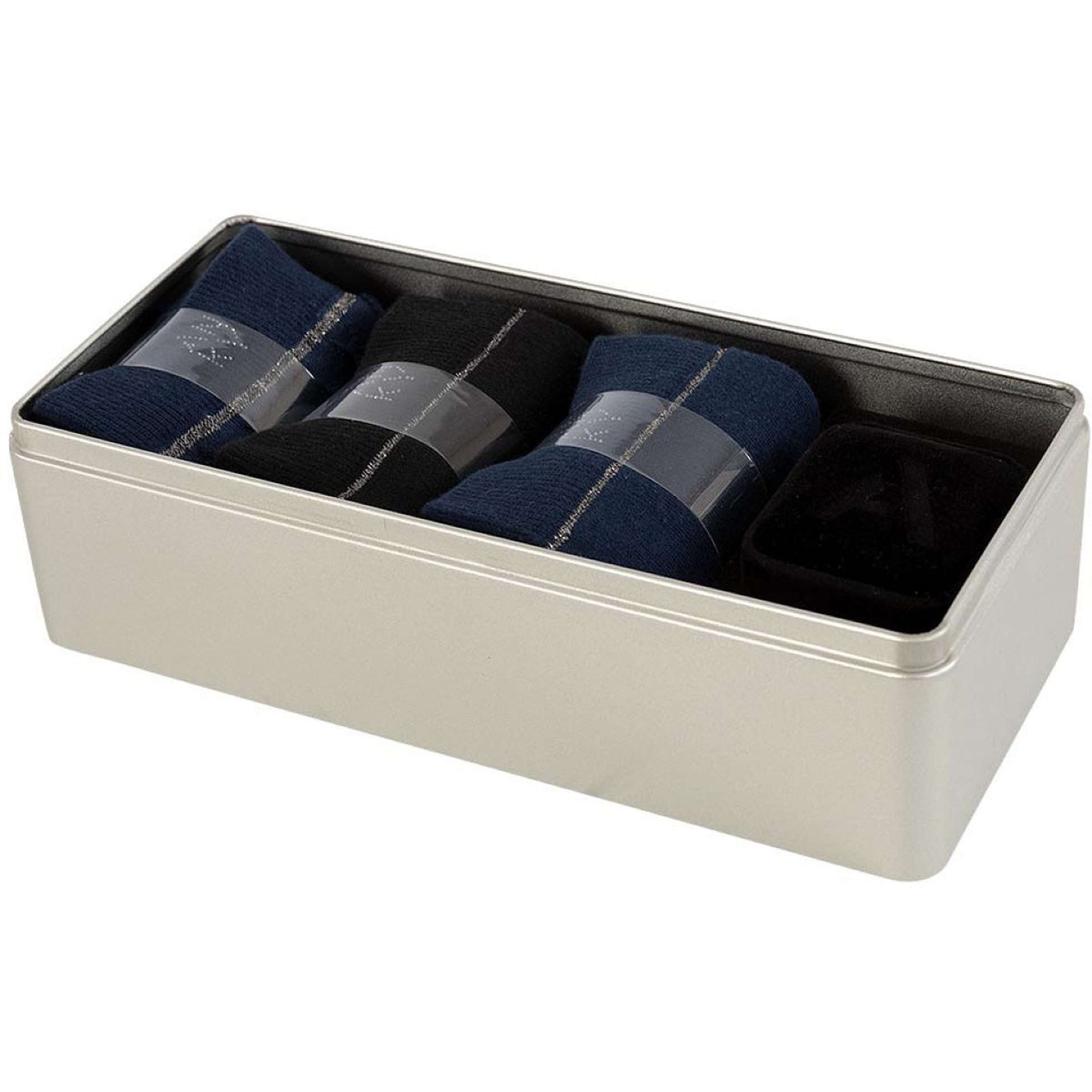Surprise your loved ones or yourself with this beautiful gift box with socks and a lucky charm! The socks are particularly comfortable. They are lightweight and fit perfectly thanks to the stretch material. The socks wick away moisture and are quick-drying for a comfortable feel while wearing. The contrasting stripe of silver glitter material completes the socks.