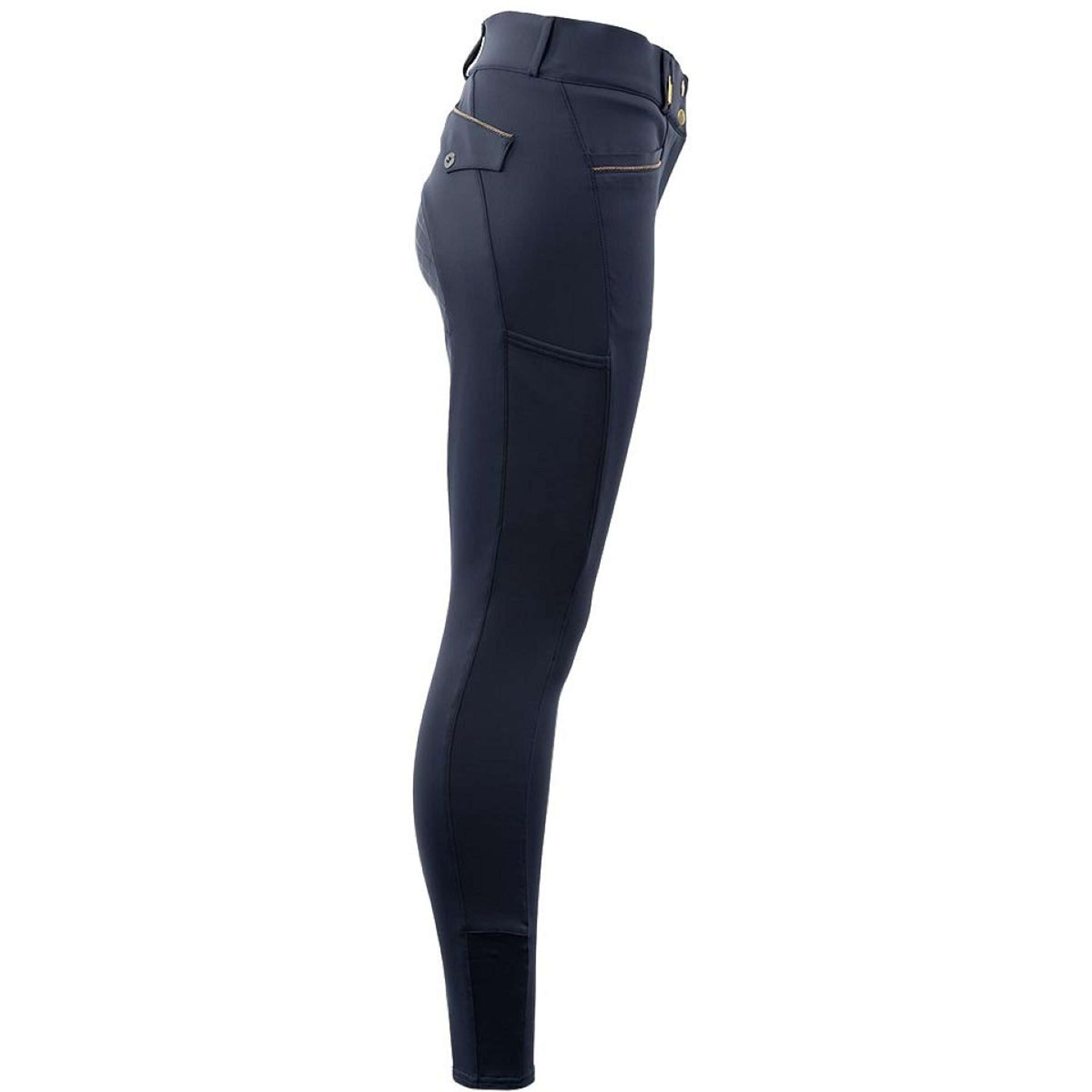 • Pantalon d'équitation durable avec traitement anti-boulochage qui procure une sensation de seconde peau • Tissu doux et extensible qui conserve sa forme pour un ajustement parfait • Finitions élégantes avec des détails mats brillants et un passepoil en cordon subtil INFORMATIONS SUR LE PRODUIT Description : Ce pantalon d'équitation super confortable et élégant est fabriqué dans un tissu doux avec de nombreux avantages agréables qui rendent l'ajustement et le confort de port optimaux. Le tissu est doux, extrêmement extensible grâce au stretch 4 directions, respirant, régulateur d'humidité, à séchage rapide et indéformable. Le pantalon d'équitation est équipé de poches avant finies par un passepoil en cordon subtil. Des poches profondes pour smartphone se trouvent des deux côtés. À l'arrière, il y a deux fausses poches à rabat qui donnent au pantalon d'équitation une touche élégante. Le siège en silicone maximise la stabilité sur la selle.