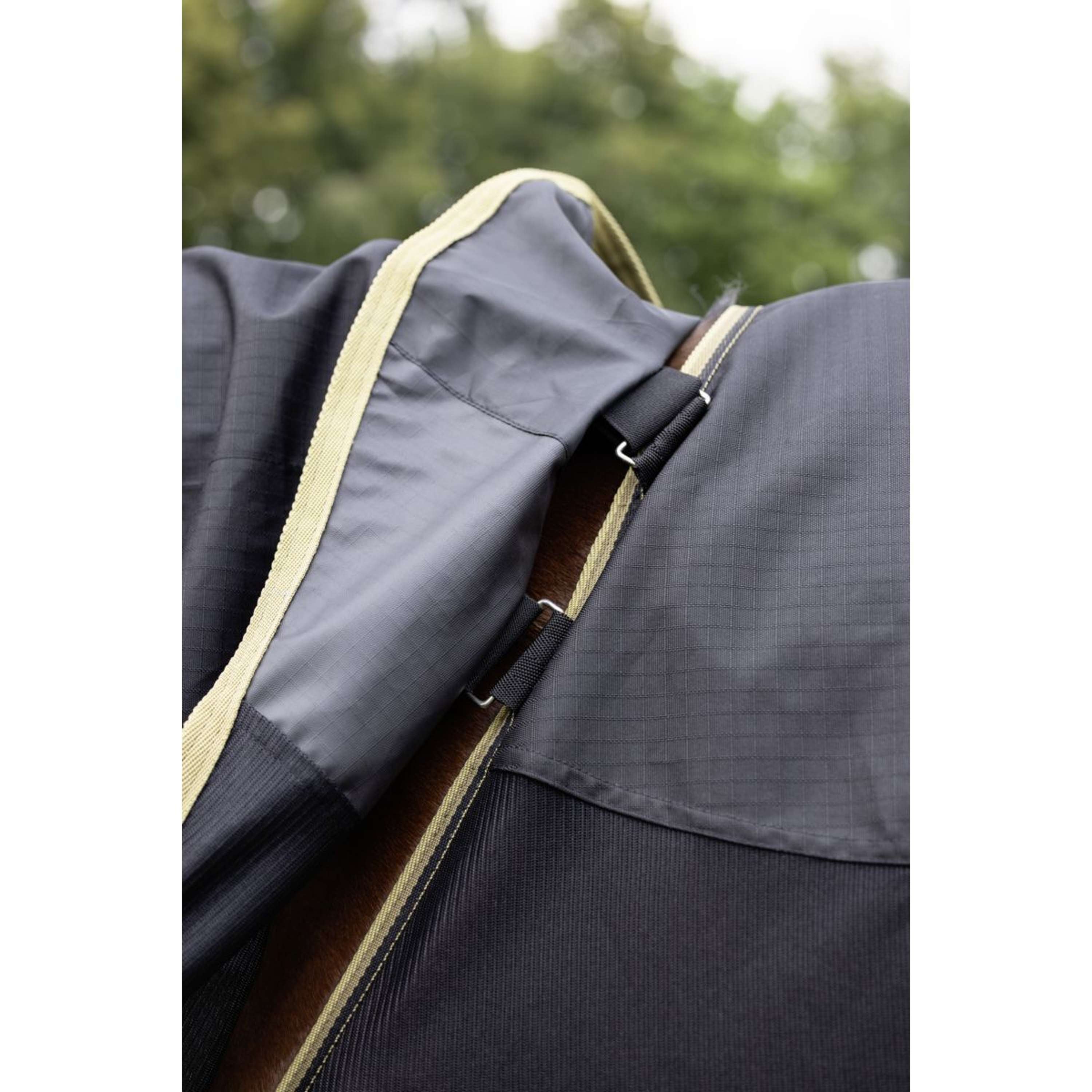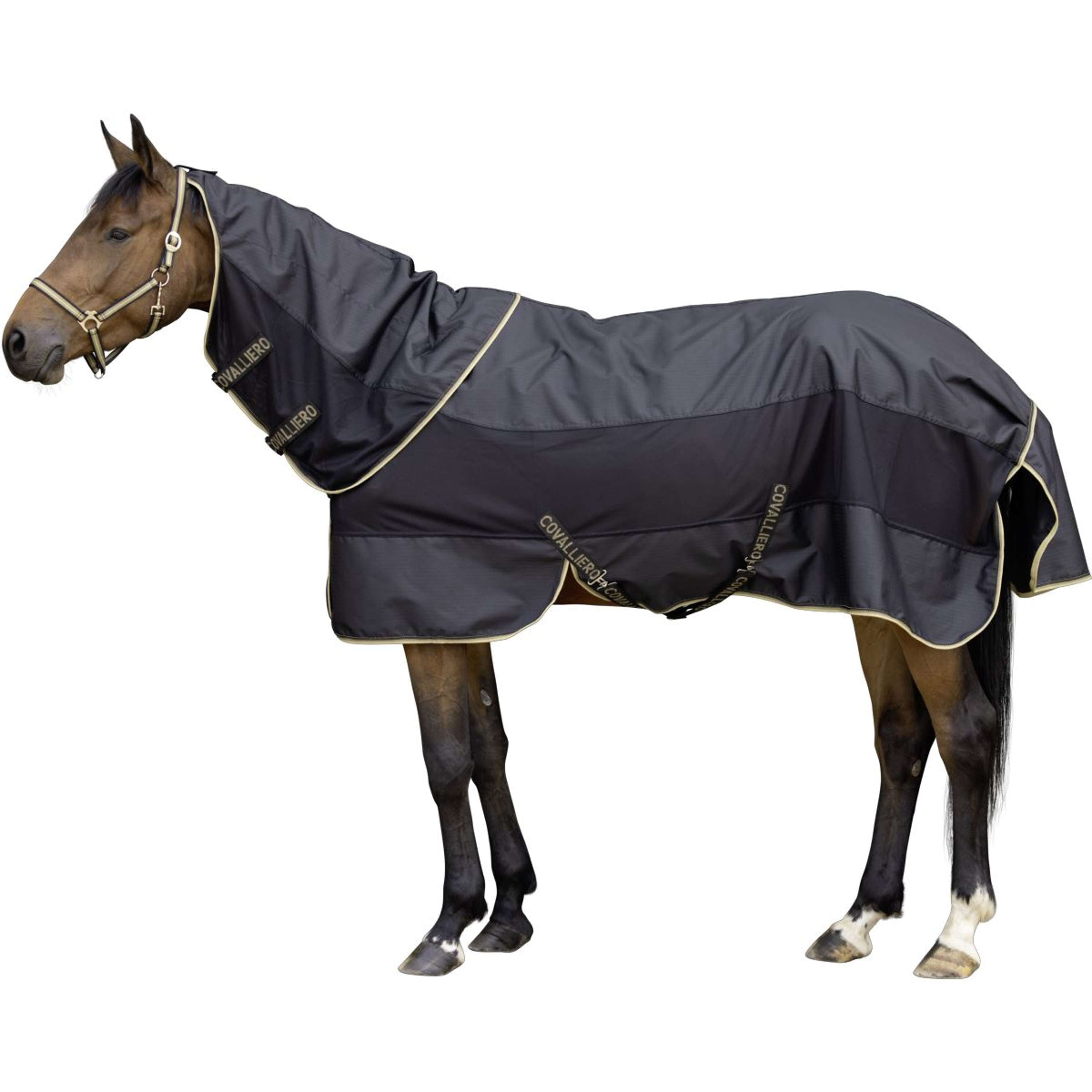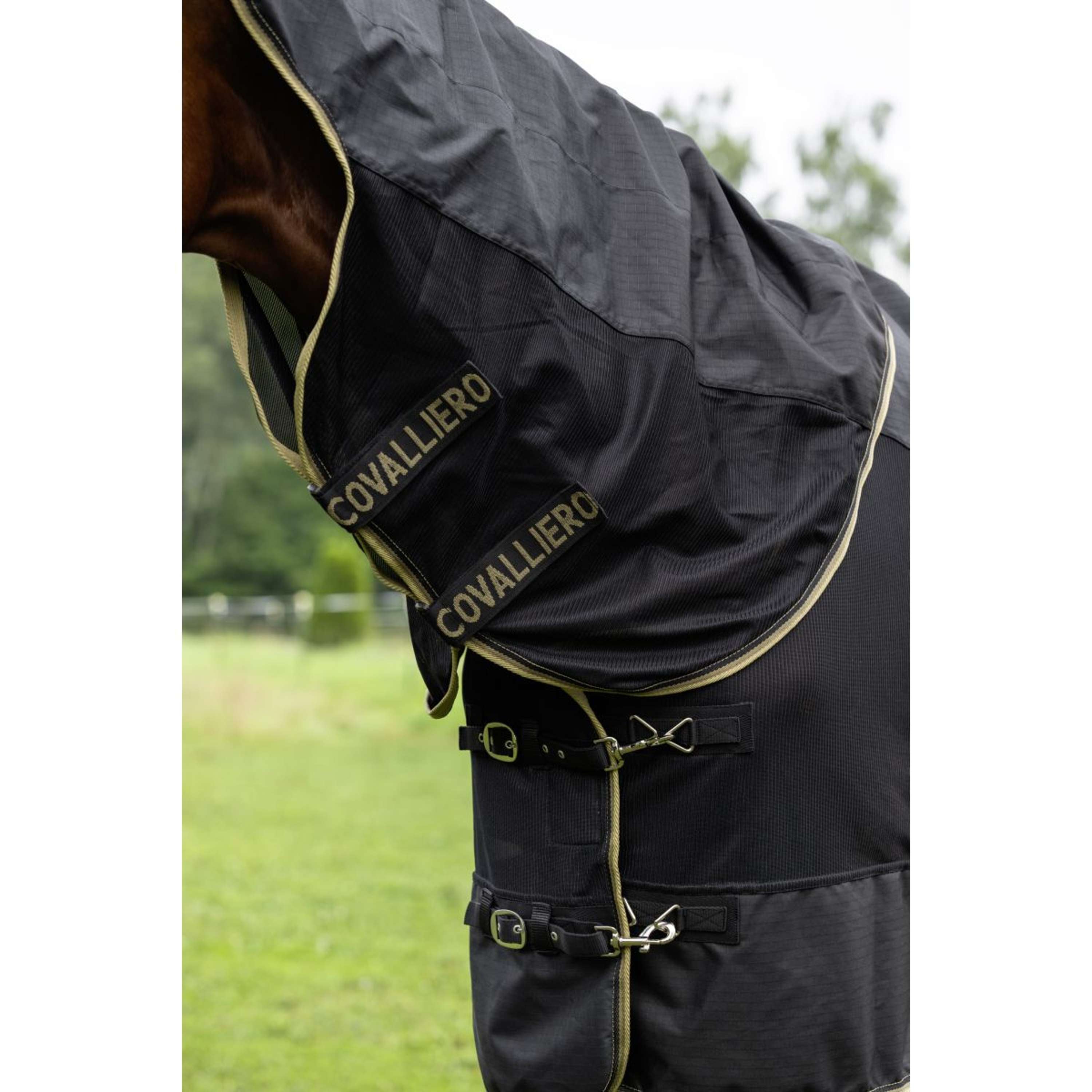 La nouvelle couverture polyvalente Covalliero allie protection et confort. Cette couverture combinée polyvalente protège efficacement votre cheval de la pluie et des mouches. Le matériau respirant de la couverture antimouches tient les insectes à distance, tandis que le tissu extérieur hydrofuge garde le cheval au sec même par temps instable.La doublure amovible de 50 g est un atout particulier qui offre un confort supplémentaire par temps frais et peut être retirée facilement si nécessaire. Ainsi, votre monture est protégée de manière optimale par tous les temps.Cette couverture pratique est super polyvalente pour toutes les conditions météo !