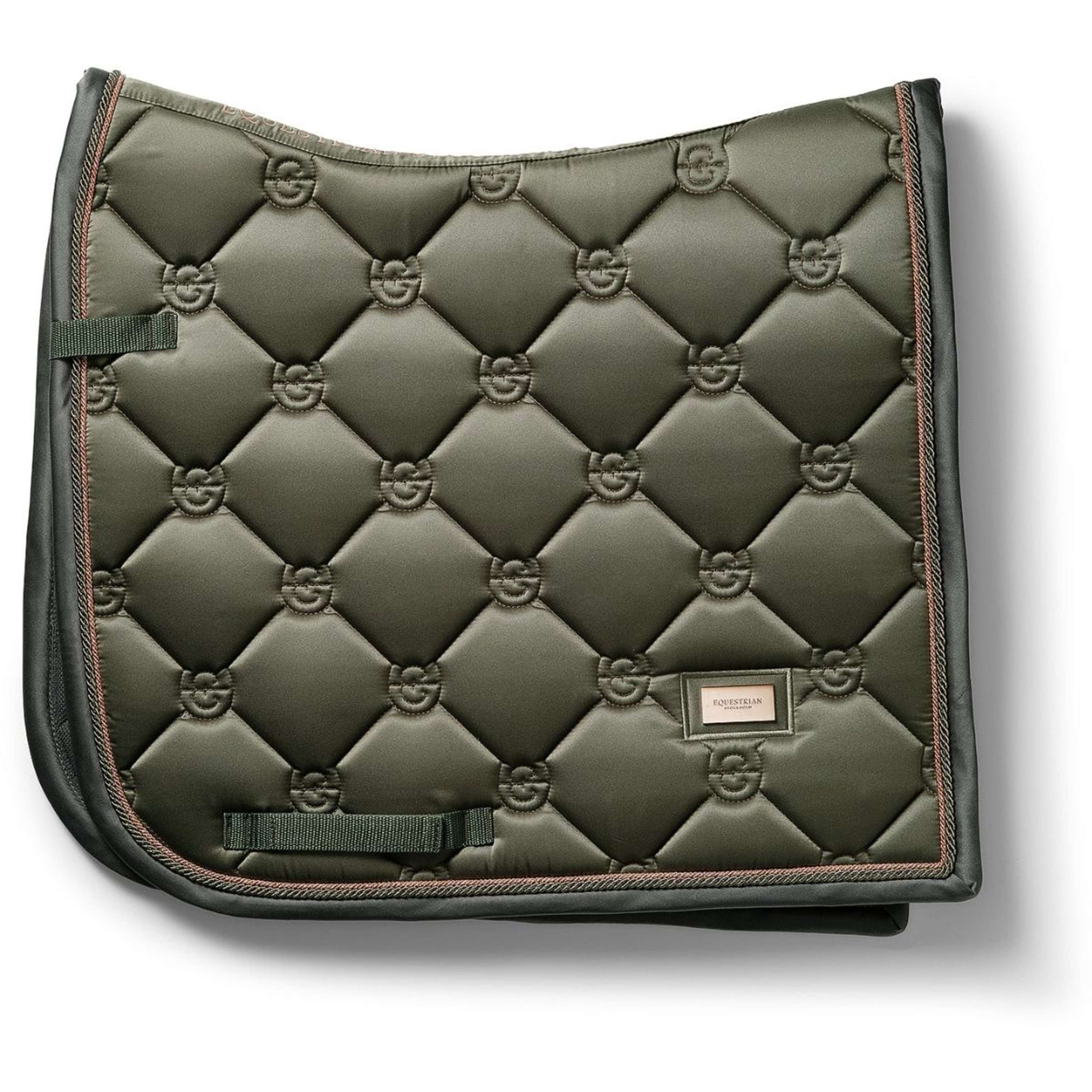Une élégante tapis de selle dans une belle couleur vert olive avec des détails rose doré et gris. Ornée de l'emblème Equestrian Stockholm en or rose. Le tissu est traité avec High IQ cool comfort, ce qui rend la tapis à séchage rapide et régulatrice d'humidité. Cela aide votre cheval à rester au sec et au frais plus longtemps. Associez la tapis à d'autres pièces de notre collection Striking Valley pour un look élégant de la tête aux pieds.