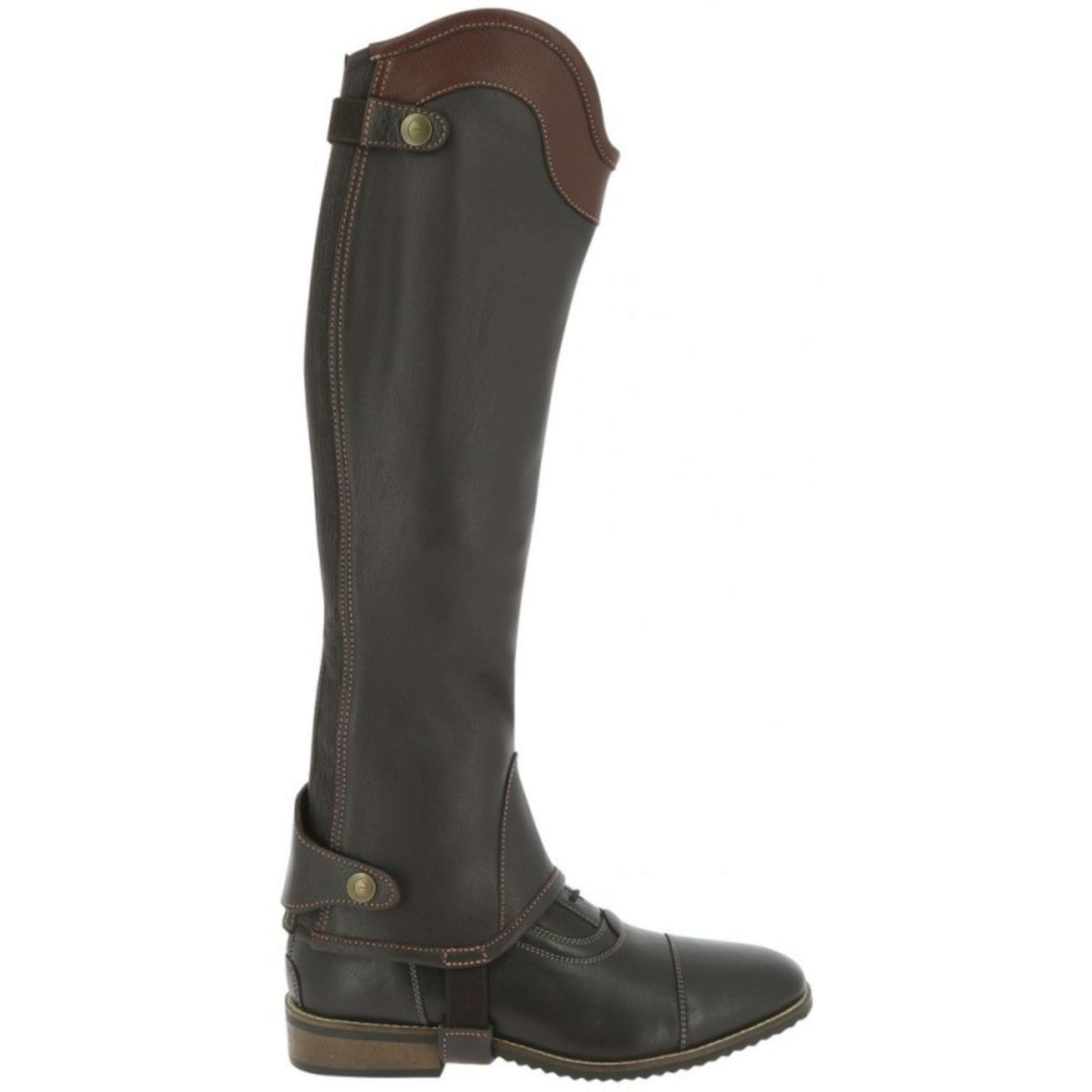 Les brides de pied, également élastiques, sont dotées de renforts en cuir. Cela permet de bouger librement tout en gardant les chaps bien en place autour des mollets.