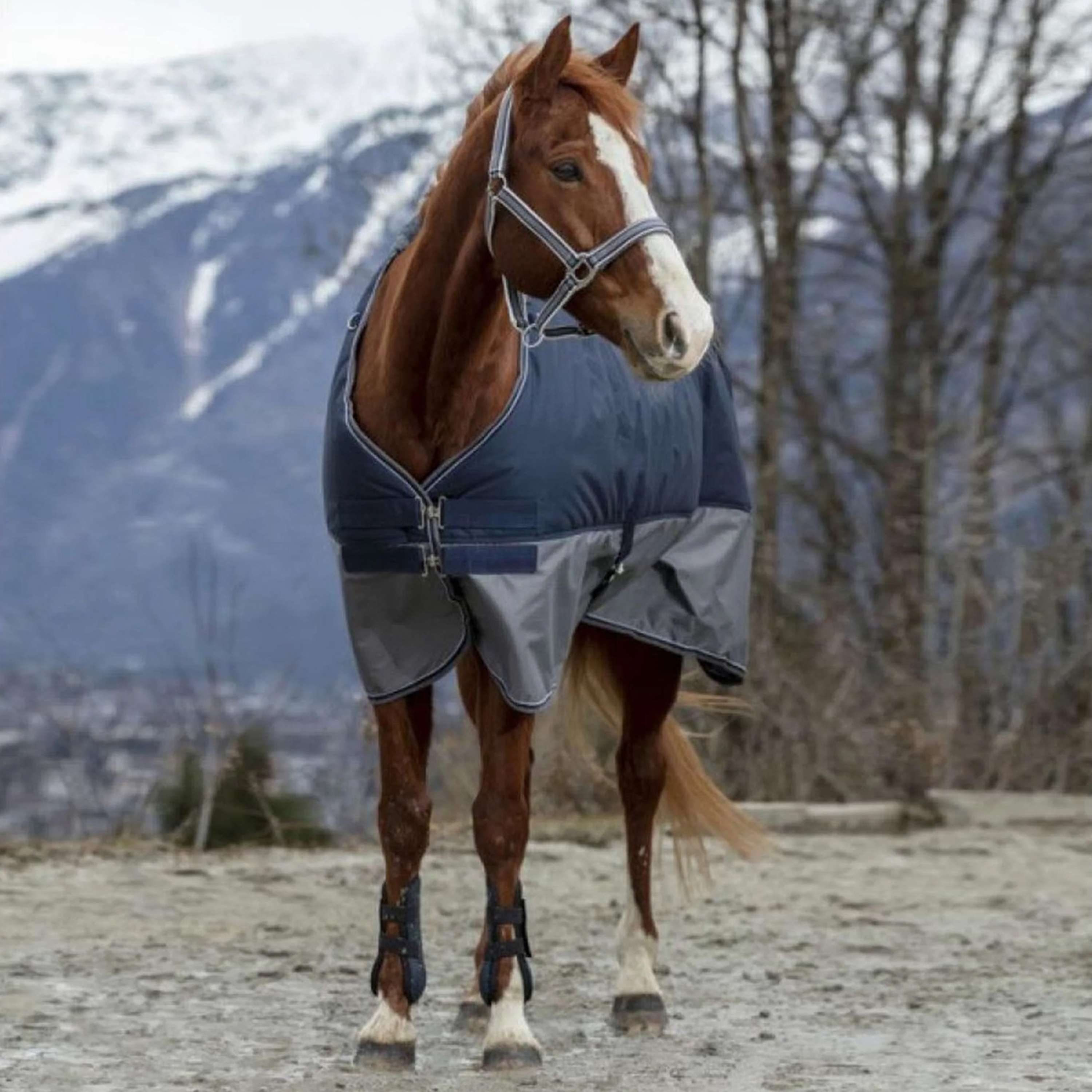 EQUITHÈME Couverture Imperméable Tyrex 600D 50g Marine/Gris Dots
