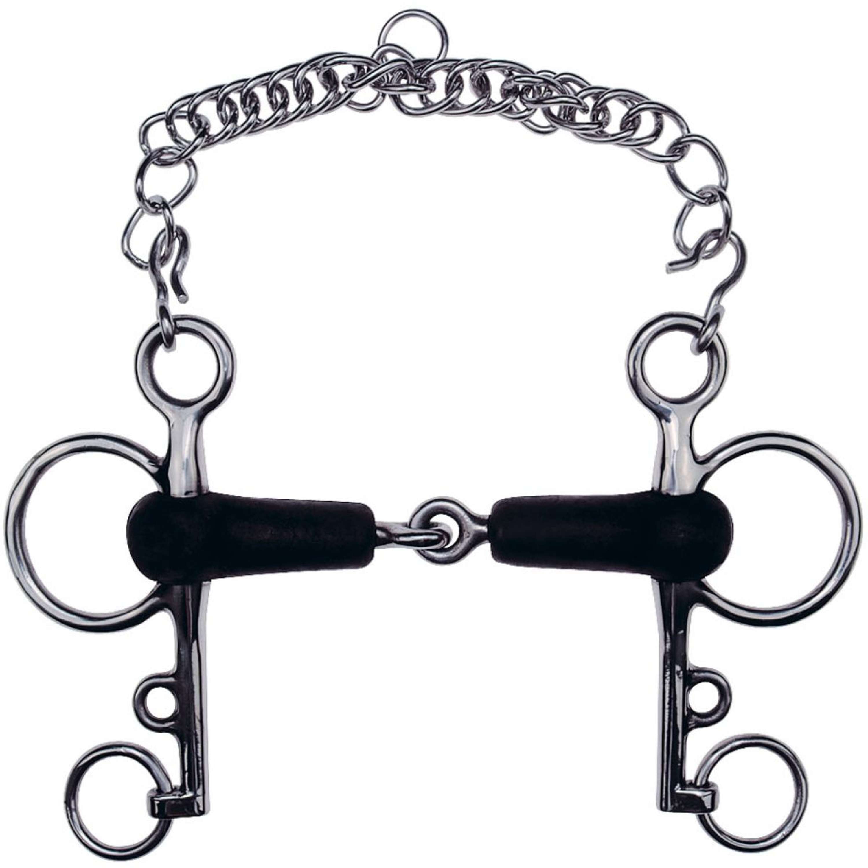 Ce mors Pelham est conçu pour vous offrir un contrôle optimal tout en préservant le confort de votre cheval. Le caoutchouc adoucit le contact avec la bouche de votre cheval, tandis que son acier inoxydable garantit une longue durée de vie.
