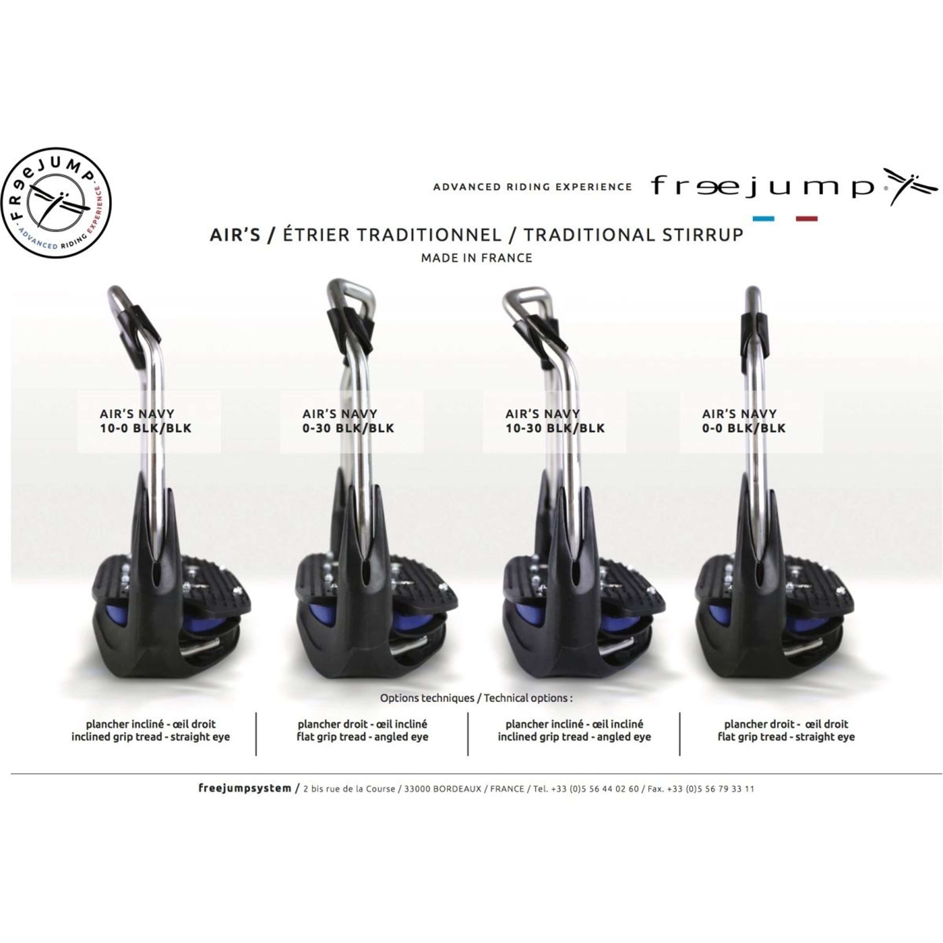 Découvrez les étriers Air's Dressage Edition qui combinent une structure en acier inoxydable avec des caractéristiques techniques pour un confort incroyable, un équilibre optimal et une adhérence améliorée. Ils offrent différentes options pour répondre à vos besoins : une orientation d'œil à 30° ou droite et une semelle plate ou inclinée à 10°.