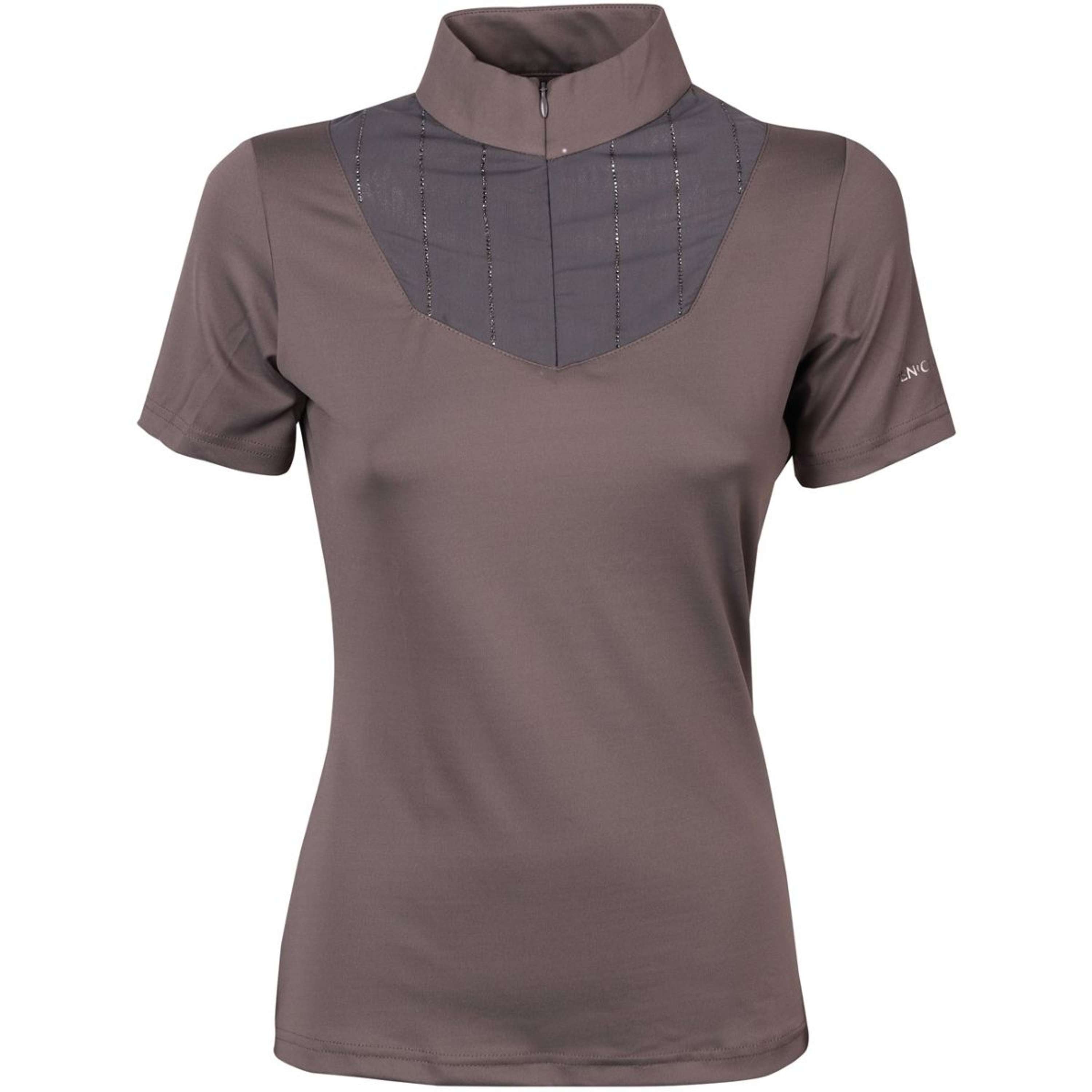 Chemise avec col montant et fermeture éclair courte, insertion en mesh avec cristaux sur le devant et imprimé Denici Cavalli sur la manche gauche.Matériau : 93% micro-polyester / 7% élasthanne.