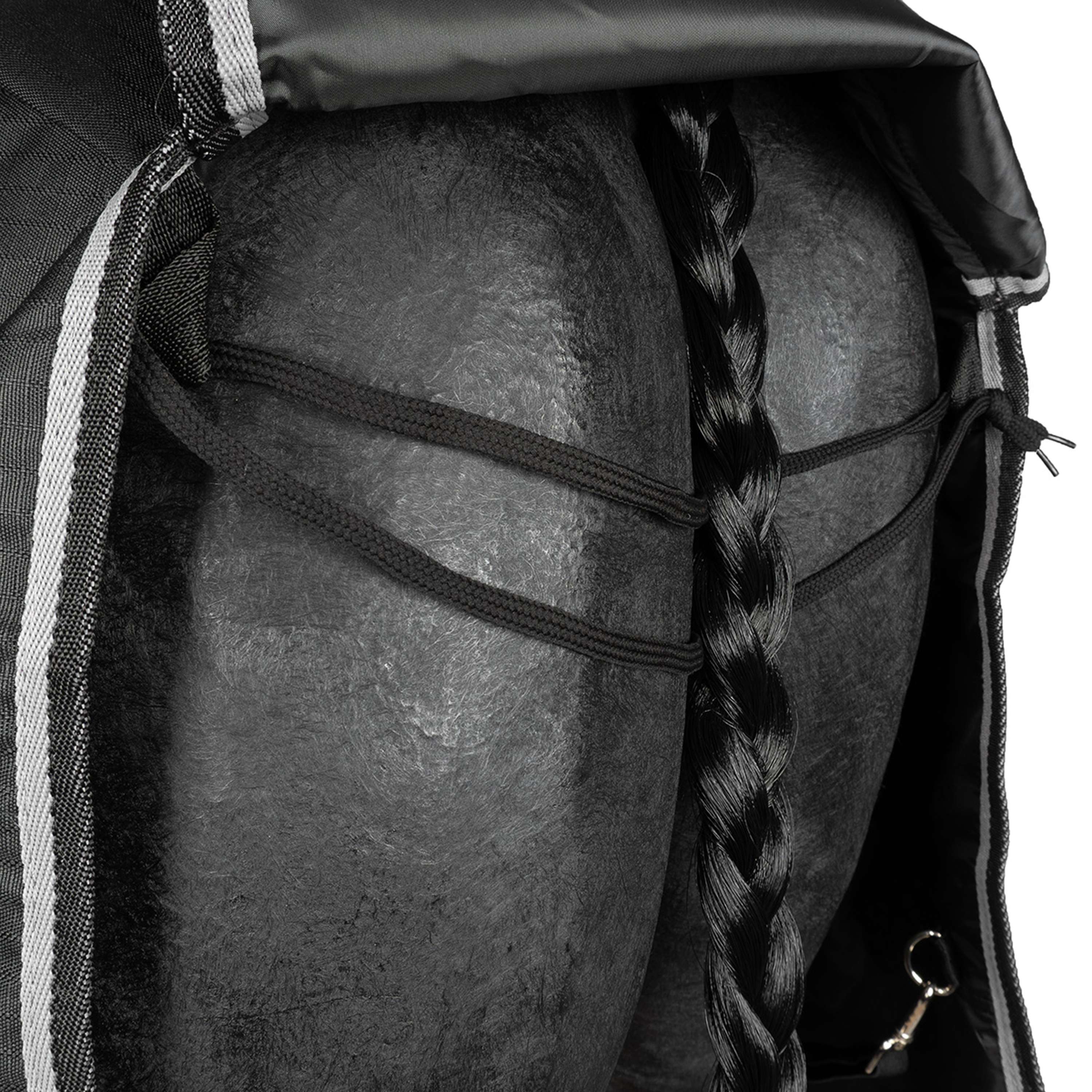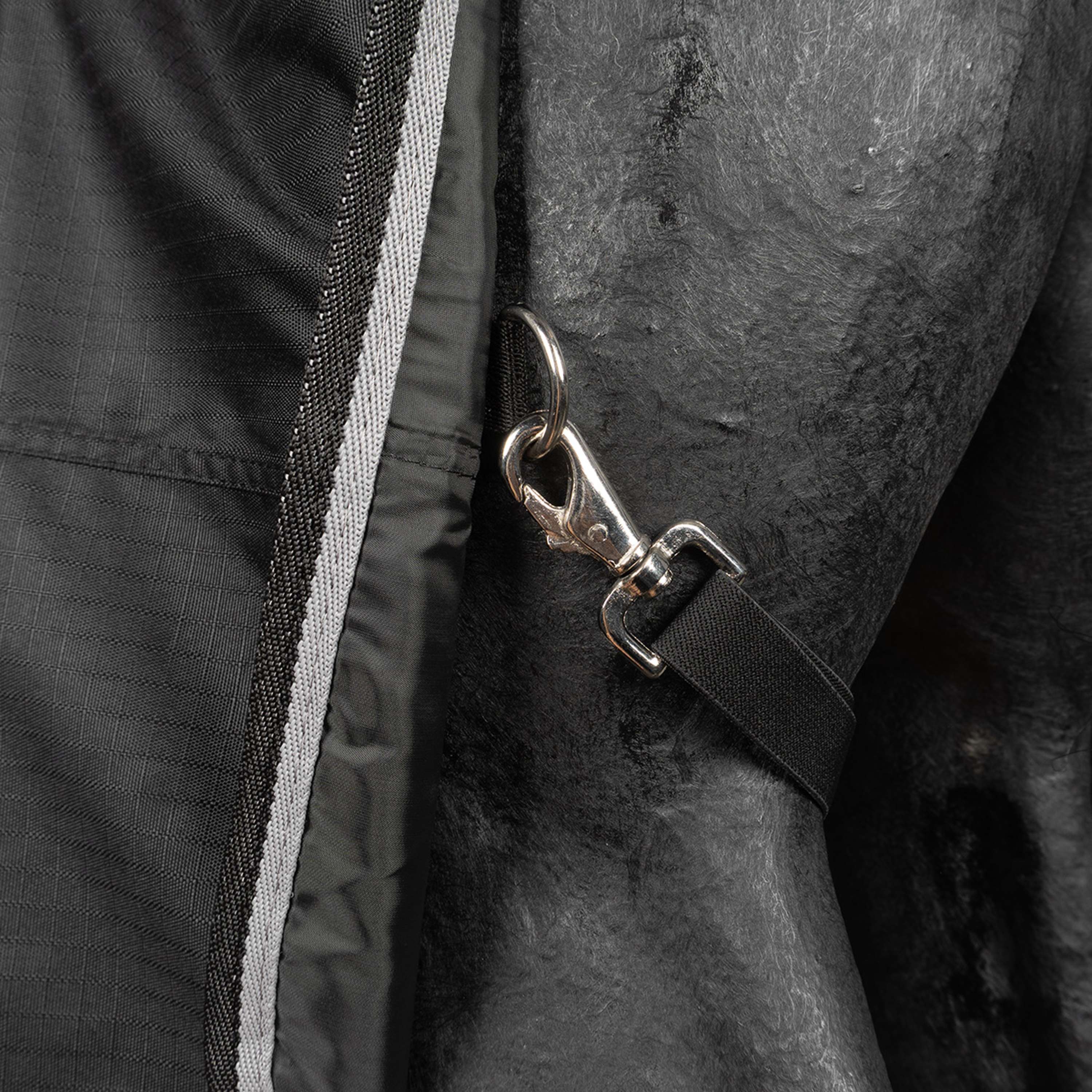 Couverture imperméable avec cou doublée polyester. Coutures thermo-soudées, pas de matelassage. Soufflets d'épaule doublés en polyester pour éviter les frottements, 2 attaches à l'avant avec boucles et mousquetons, rabat de queue, sangles ventrales croisées, sangles de cuisses élastiques amovibles. Imperméabilité: 2000WR/WPRespirabilité: 2000MVP Composition:Extérieur: 600D polyester ripstopDoublure: polyester
