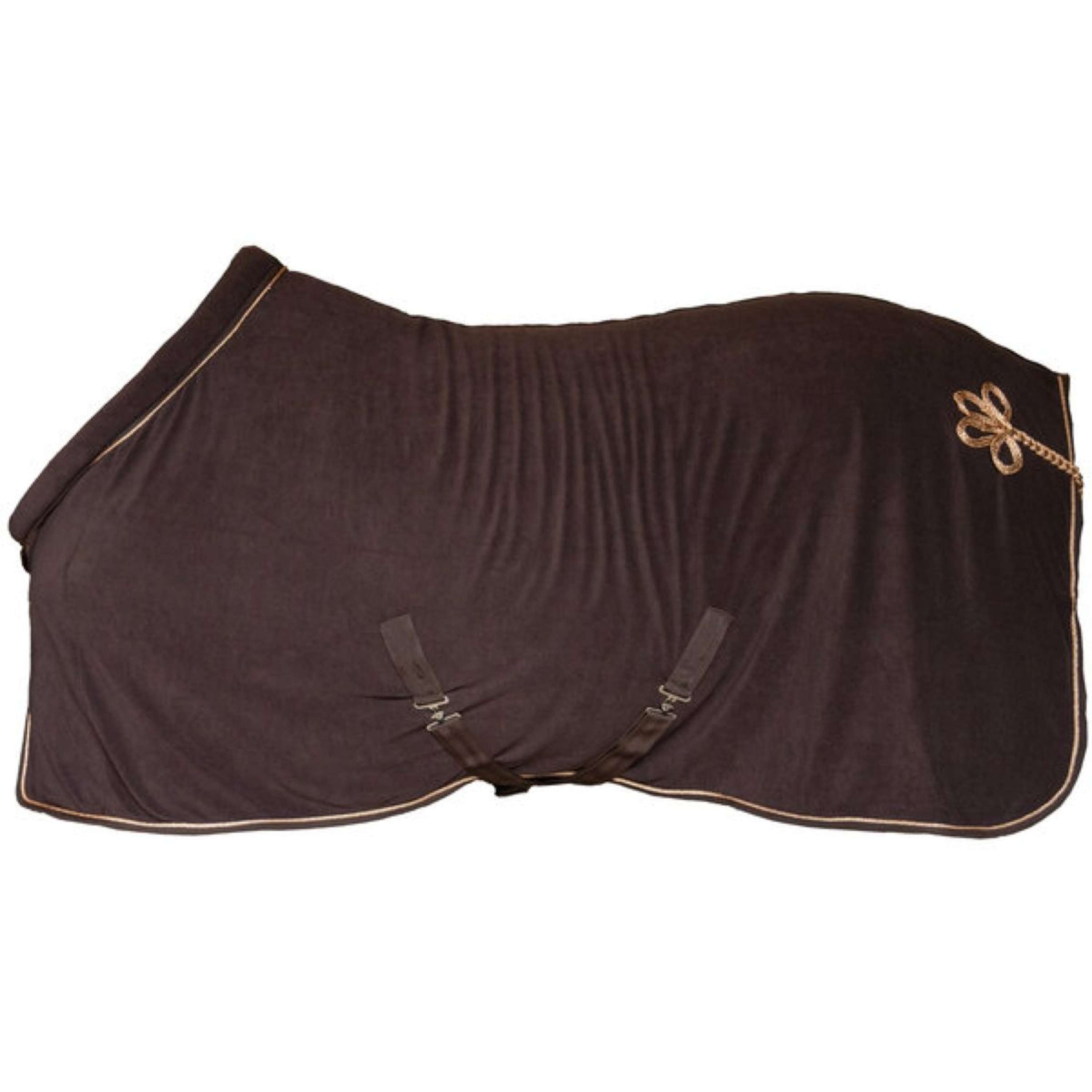 La couverture séchante Rosegold Glamour Style allie fonctionnalité optimale et design élégant, offrant un soutien idéal au cheval après l'entraînement. Elle séduit par ses propriétés respirantes et son absorption optimale de la transpiration, favorisant ainsi le bien-être du cheval. Grâce à ses sursangles croisées réglables et amovibles avec attaches métalliques, la couverture séchante s'ajuste facilement à la morphologie du cheval. La sangle de queue offre également un maintien supplémentaire, garantissant un maintien optimal même lors des mouvements intenses. Le bord de la couverture est orné d'un cordon décoratif. Autre atout : l'élégant détail or rose au dos de la couverture, qui complète son design luxueux et attire tous les regards.