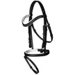 Le bridon est équipé d'une muserolle anglaise avec une sangle flash, adapté à différentes pratiques d'équitation. Notez que le mors n'est pas inclus.