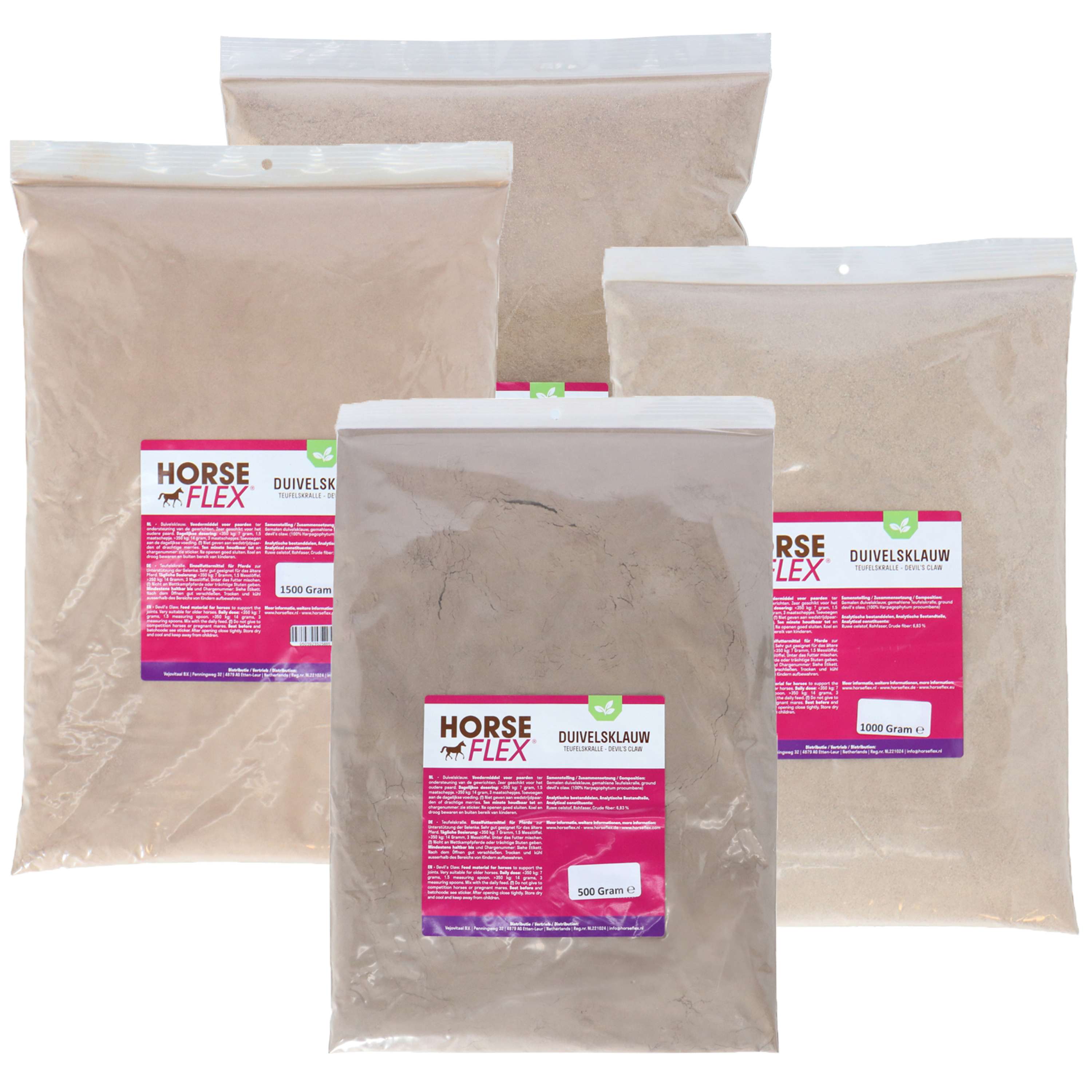 HorseFlex Devil's Claw est une poudre fine, parfaite pour mélanger avec les morceaux, boues ou muesli que mange votre cheval. Si votre cheval mange principalement du foin, optez pour les morceaux grossiers de griffe du diable.