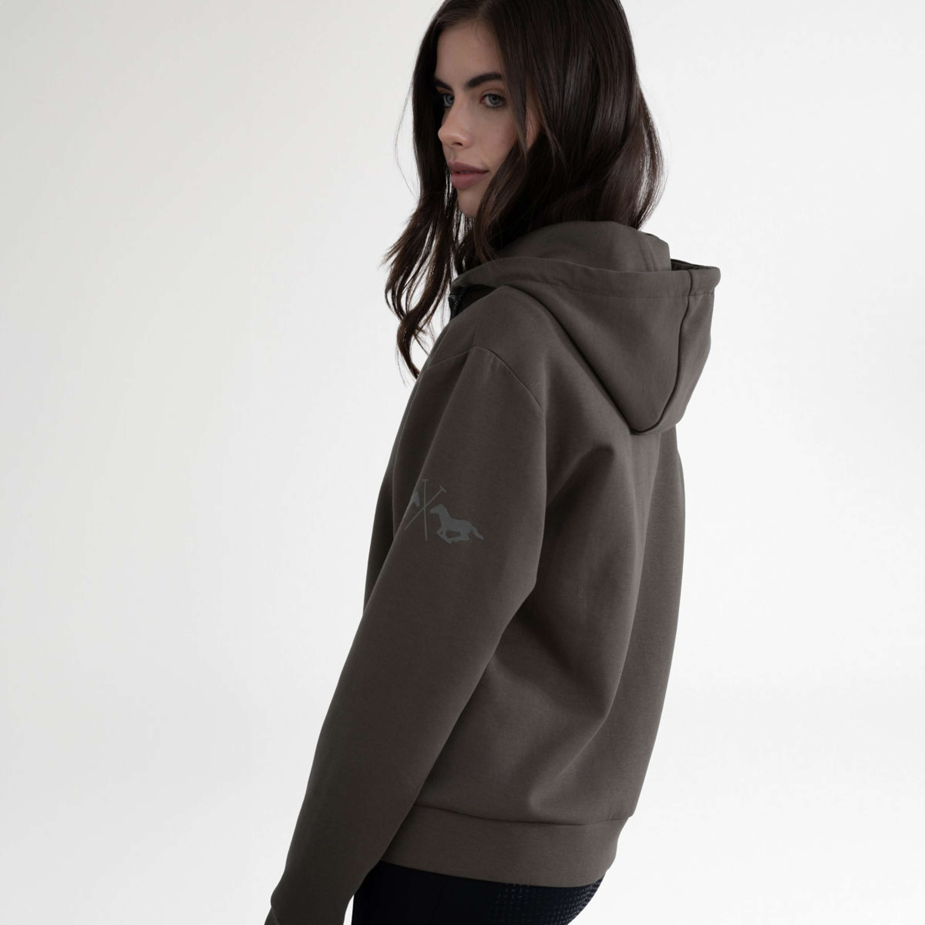 HVPJoan Cardigan – Stylé, Fonctionnel et ConfortableImaginez qu’après une sortie stimulante ou un entraînement intensif en dressage, vous souhaitez vivre le confort et le style ultimes. Le Cardigan HVPJoan est votre choix parfait ! Conçu avec une coupe féminine flatteuse et une élégante longueur intermédiaire, ce superbe gilet à capuche est un ajout indispensable à votre garde-robe d’équitation. Grâce à l’élasticité innovante à 4 directions et au tissu à séchage rapide, vous resterez toujours merveilleusement confortable, que vous soyez actif à l’école d’équitation ou que vous vous détendiez après votre entraînement au polo. La capuche, doublée de cordons ronds bleu marine et noirs métalliques, ainsi que les œuvres tonales raffinées, confèrent à ce cardigan un look exclusif. Avec le logo HVPL agrandi en imprimé et en satin appliqué sur la poitrine, ainsi que le logo HV Polo et l’illustration #3 en imprimé métallique sur les deux manches, vous exprimez fièrement votre passion pour les sports équestres et le monde du polo. La fermeture éclair bidirectionnelle avec un tire-logo et les deux poches avant pratiques complètent cet article élégant. Coupe féminine et mi-longueur pour un look élégant. Tissu extensible à 4 sens et séchage rapide pour un confort optimal. Capuche à double doublure avec des cordons métalliques stylés. Marque exclusive HVPL et HV Polo sur la poitrine et les manches. Fermeture éclair bidirectionnelle pratique et deux poches avant pour plus de fonctionnalité.