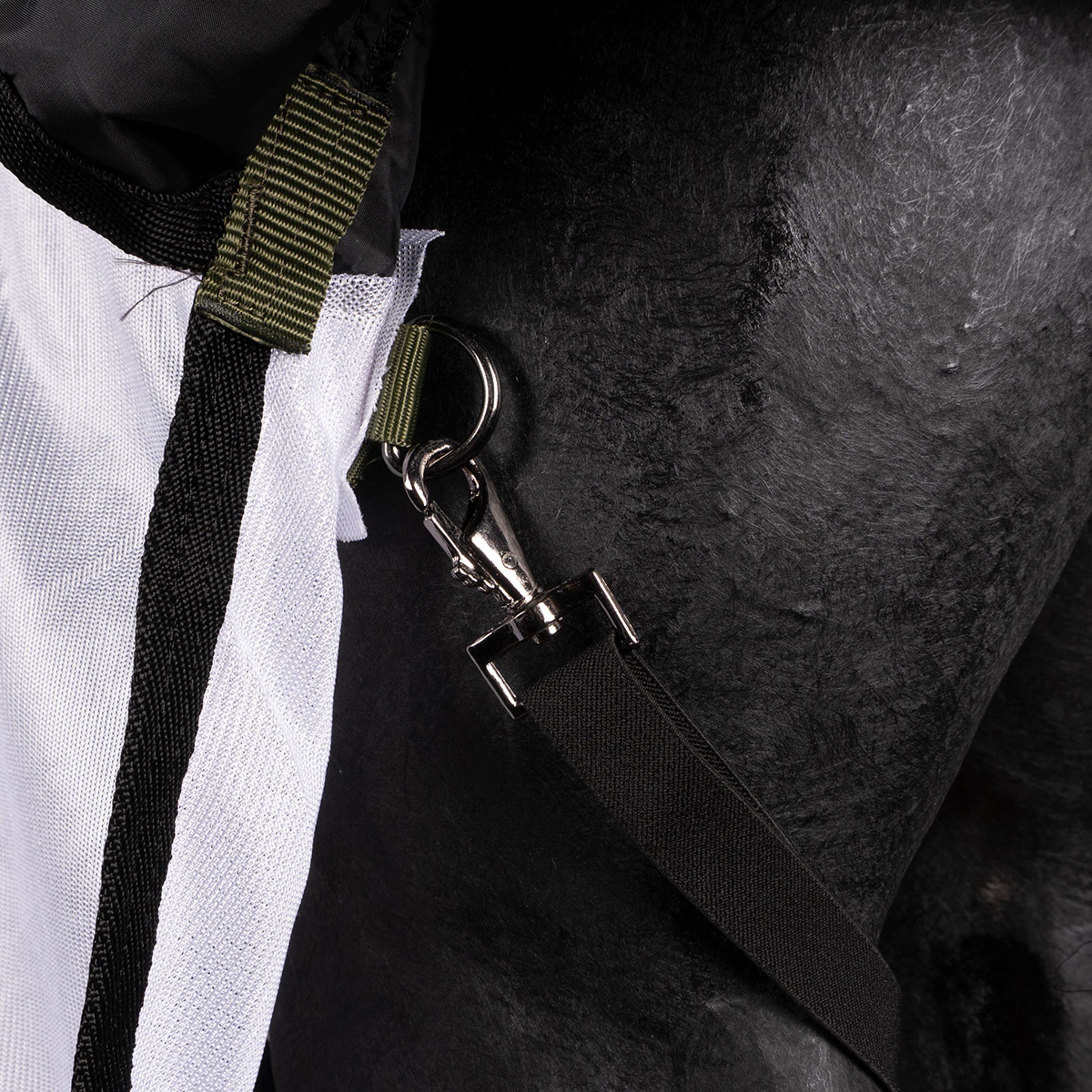 Ne doutez plus jamais de la couverture que votre cheval doit porter au printemps et en été ! Cette couverture 2-en-1 offre non seulement un grand confort d’usure mais aussi une protection dans diverses conditions météorologiques. Lors d’une averse estivale, votre cheval reste au sec grâce à la couche supérieure résistante à l’eau (avec le célèbre imprimé floral Imperial Riding !). De plus, le tissu en maille léger et respirant en fait un tapis parfait. La couverture possède un double rabat ventreur et est équipée de 3 circonférences autour du ventre, de 2 sangles élastiques pour les pattes arrière, d’un rabat de queue ergonomique et de plis pour une liberté maximale de mouvement. Avec le système de boucle et le velcro sur la poitrine, cette couverture reste parfaitement en place. En résumé, cette couverture résistante à l’eau et aux insectes est un vrai indispensable pour votre cheval ! Veuillez noter : la partie manche est vendue séparément.
