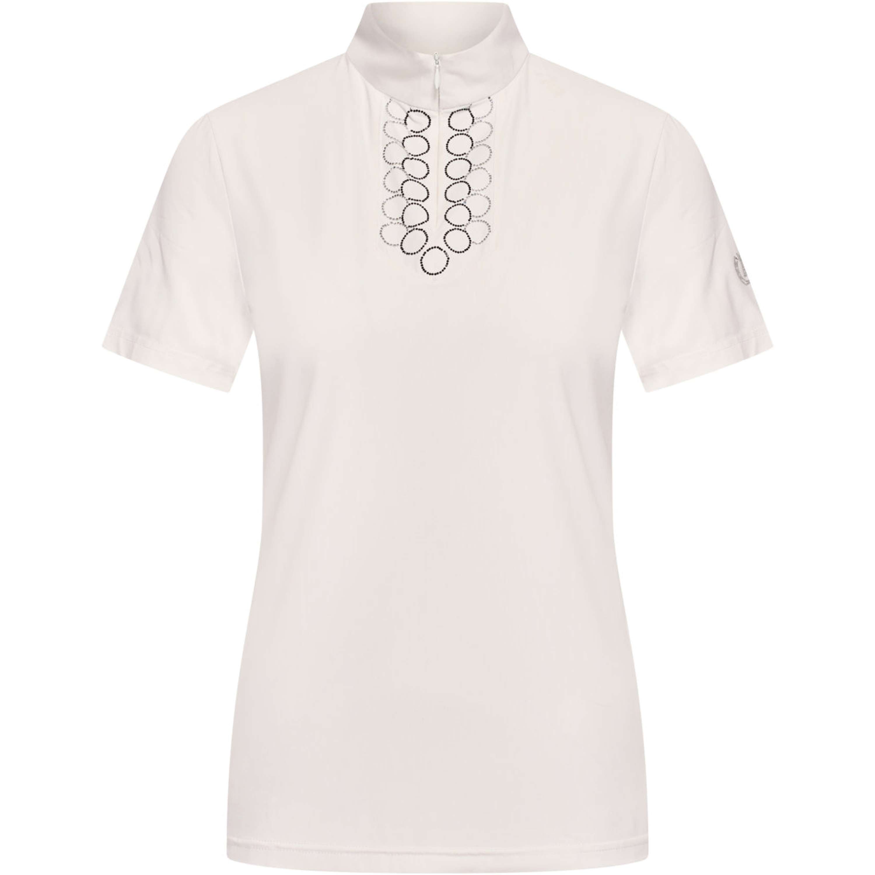IRHShine Competition Shirt – Glamour, Mode et ConfortablePrêt à attirer les projecteurs ? Avec le maillot de compétition IRHShine, vous êtes assuré d’être le centre d’attention brillant du dressage ou du saut ! Cette pièce remarquable combine sans effort un design de premier plan et une fonctionnalité, parfaite pour la moindre qui souhaite exprimer son style personnel. Vous adorerez le col debout blanc impeccable, le devant assorti, qui brille grâce à une illustration exclusive en strass bicolores. Cela donne à votre tenue de compétition cette dose supplémentaire de glamour pour laquelle Imperial Riding est connu ! La demi-fermeture à l’avant pratique facilite le passage et le débarrassage, tandis que les manches courtes vous offrent toute la liberté de mouvement dont vous avez besoin. Et bien sûr, le logo étincelant en strass sur la manche gauche ne doit pas manquer pour souligner votre amour de la mode et de l’équitation. Osez briller ! Une œuvre glamour avec des strass bicolores pour un look étincelant. Col droit blanc et devant pour un look classique et moderne. Demi-fermeture éclair à l’avant pour un simple enfilage et un confort supplémentaire. Manches courtes offrant une liberté de mouvement optimale à chaque sortie. Un logo subtil en strass sur la manche gauche en touche finale.