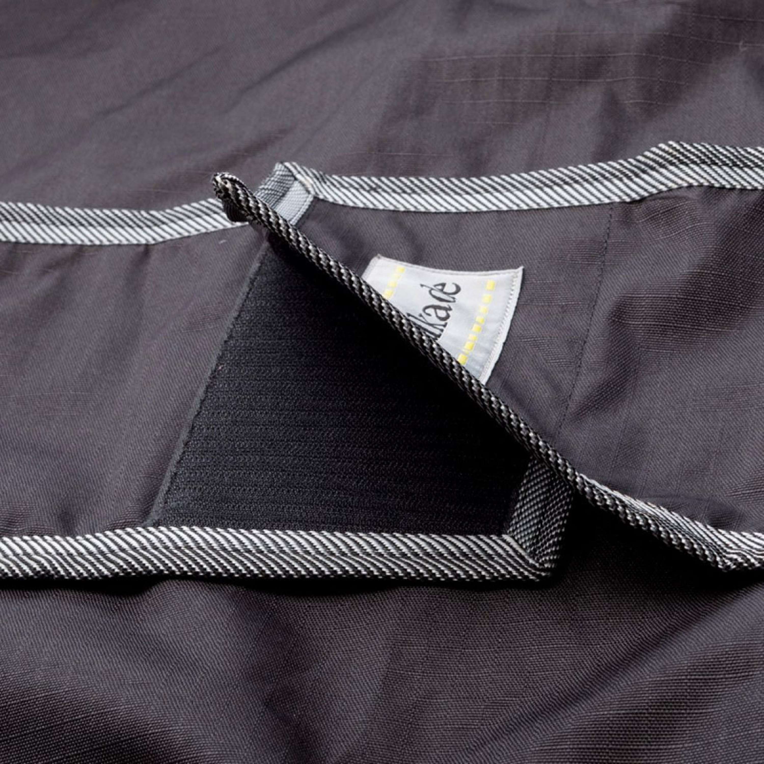 Cette couverture est simple à fixer au garrot grâce à une attache velcro. En un clin d'œil, vous êtes prêt à partir pour de longues balades même en cas de pluie.