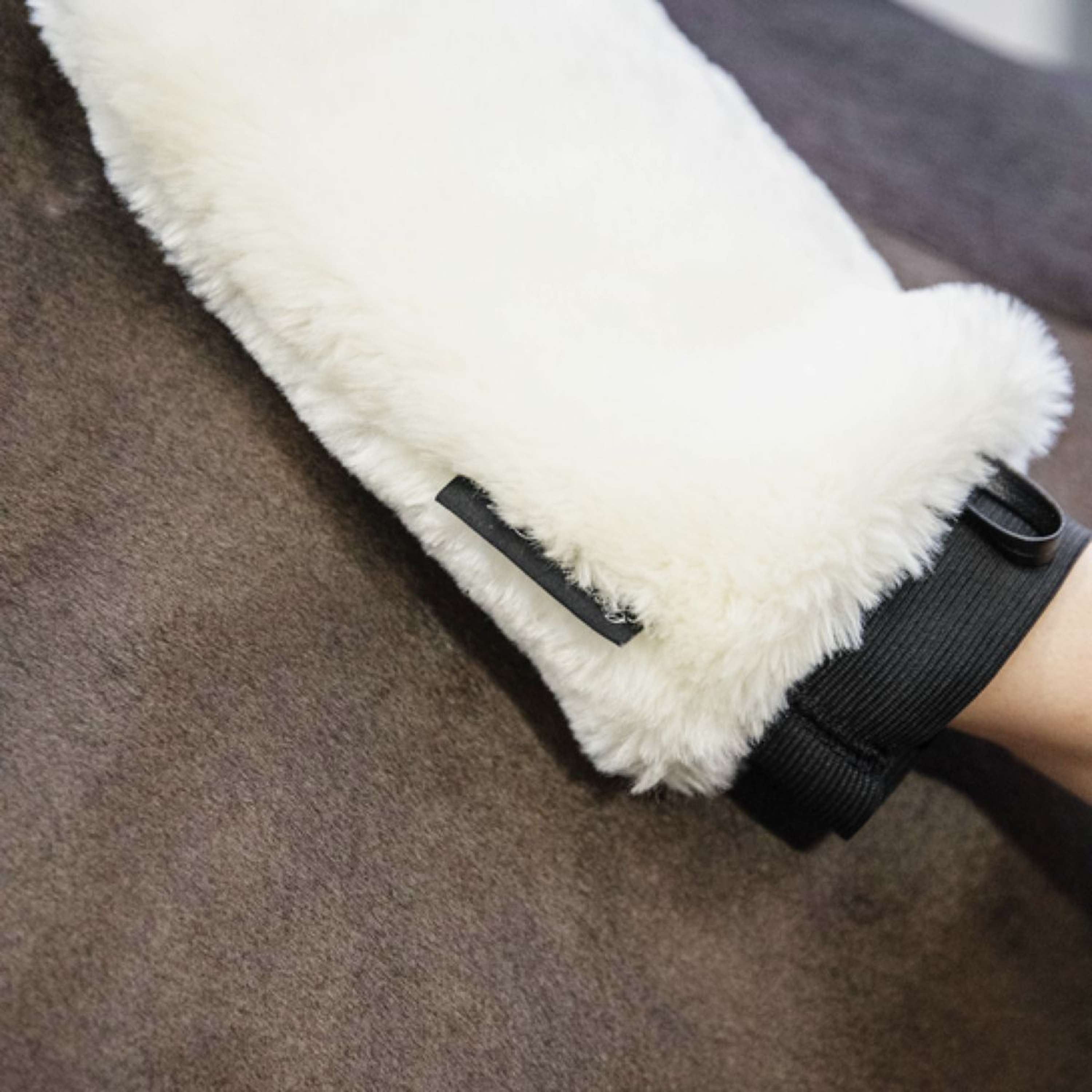 Ce gant est fabriqué en peau de mouton artificielle, 100% respectueuse des animaux. Très résistant et facile d'entretien, il reste de qualité même après un lavage à 30 degrés. La peau de mouton est présente des deux côtés du gant, et une bande élastique maintient le gant en place sans glisser.
