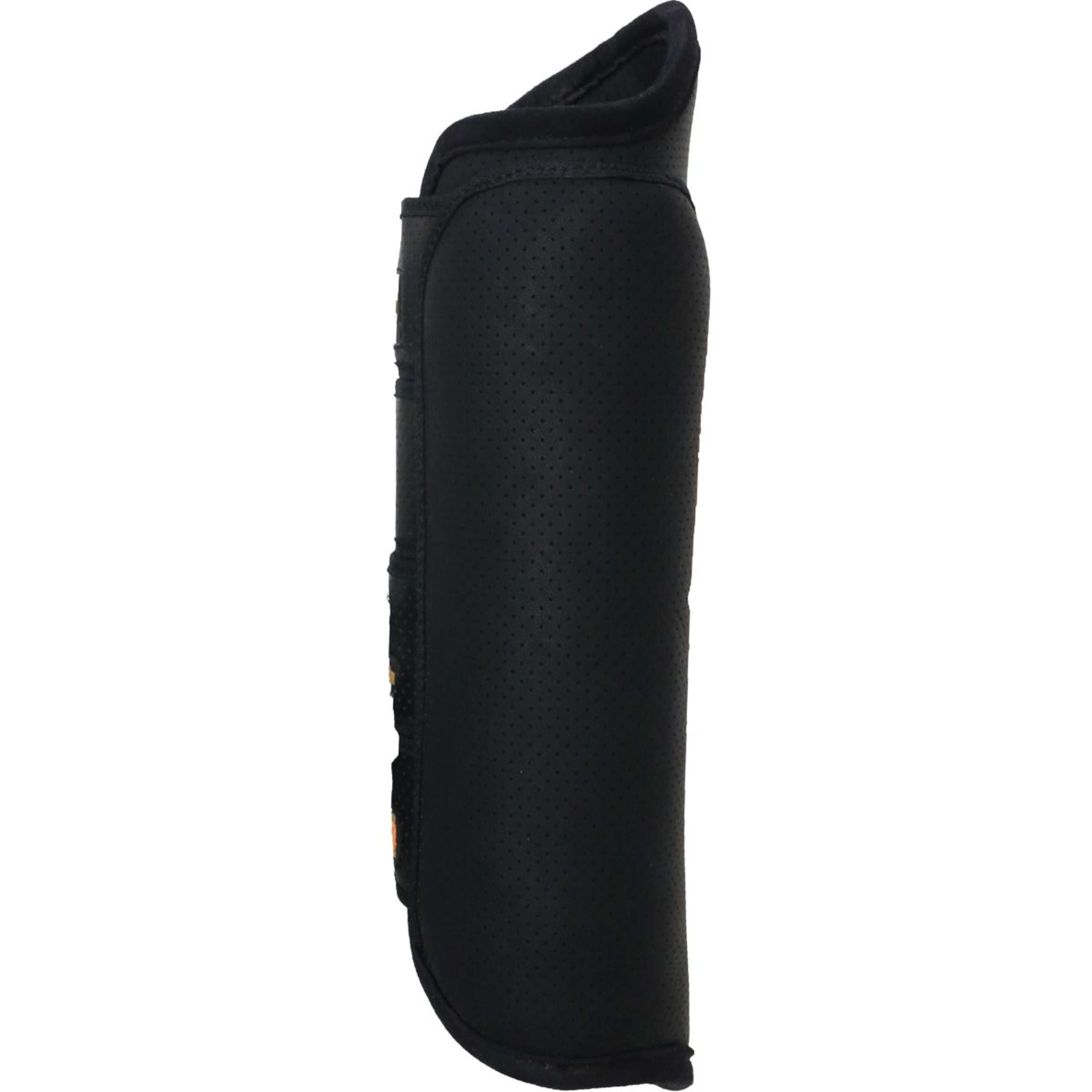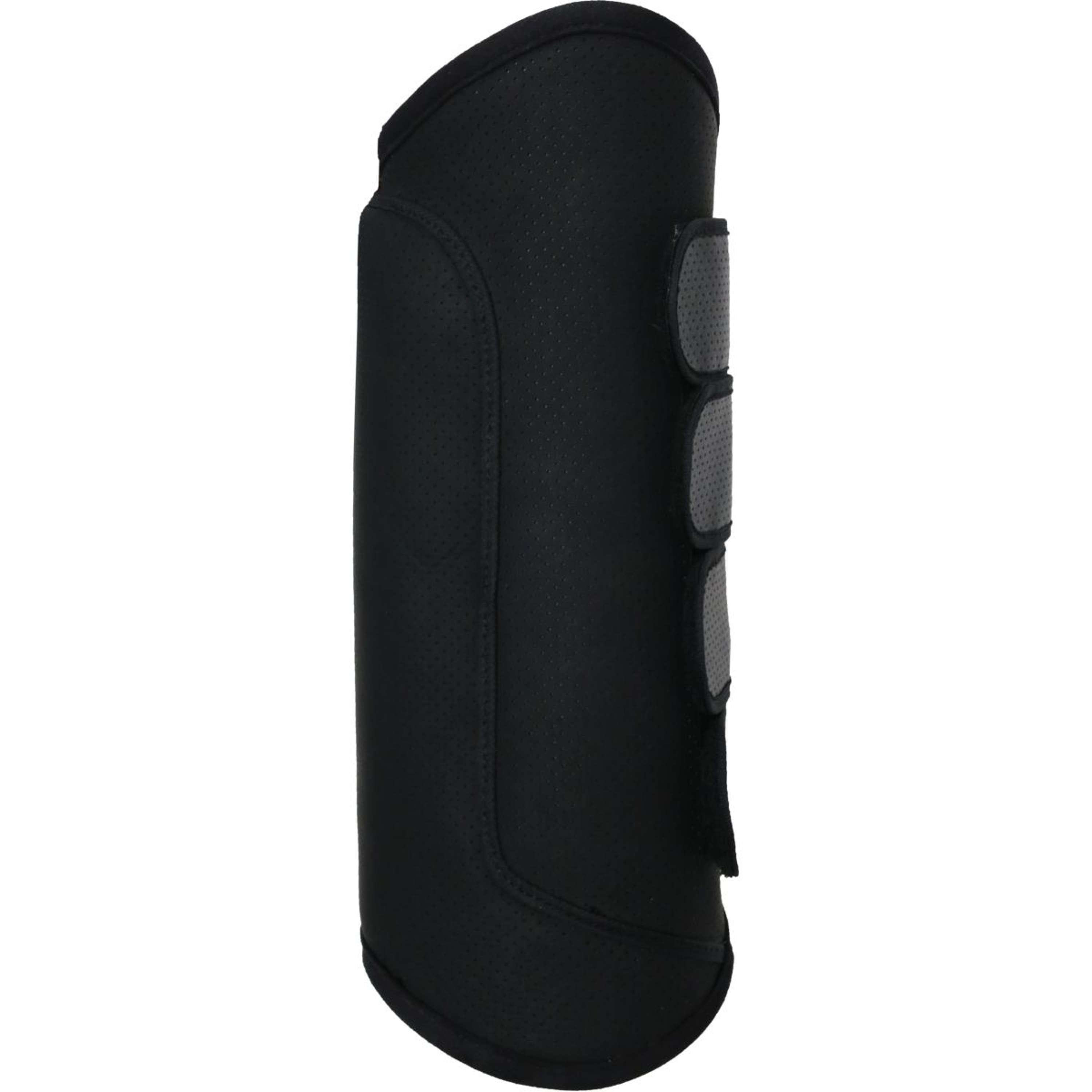 La couche extérieure est faite de cuir artificiel perforé. Les petits trous de ventilation empêchent les membres de chauffer. De plus, ce matériau n'absorbe pas l'eau, permettant aux guêtres Air Tech de rester légères, ce qui améliore les performances et le confort du cheval pendant les longues épreuves de cross.