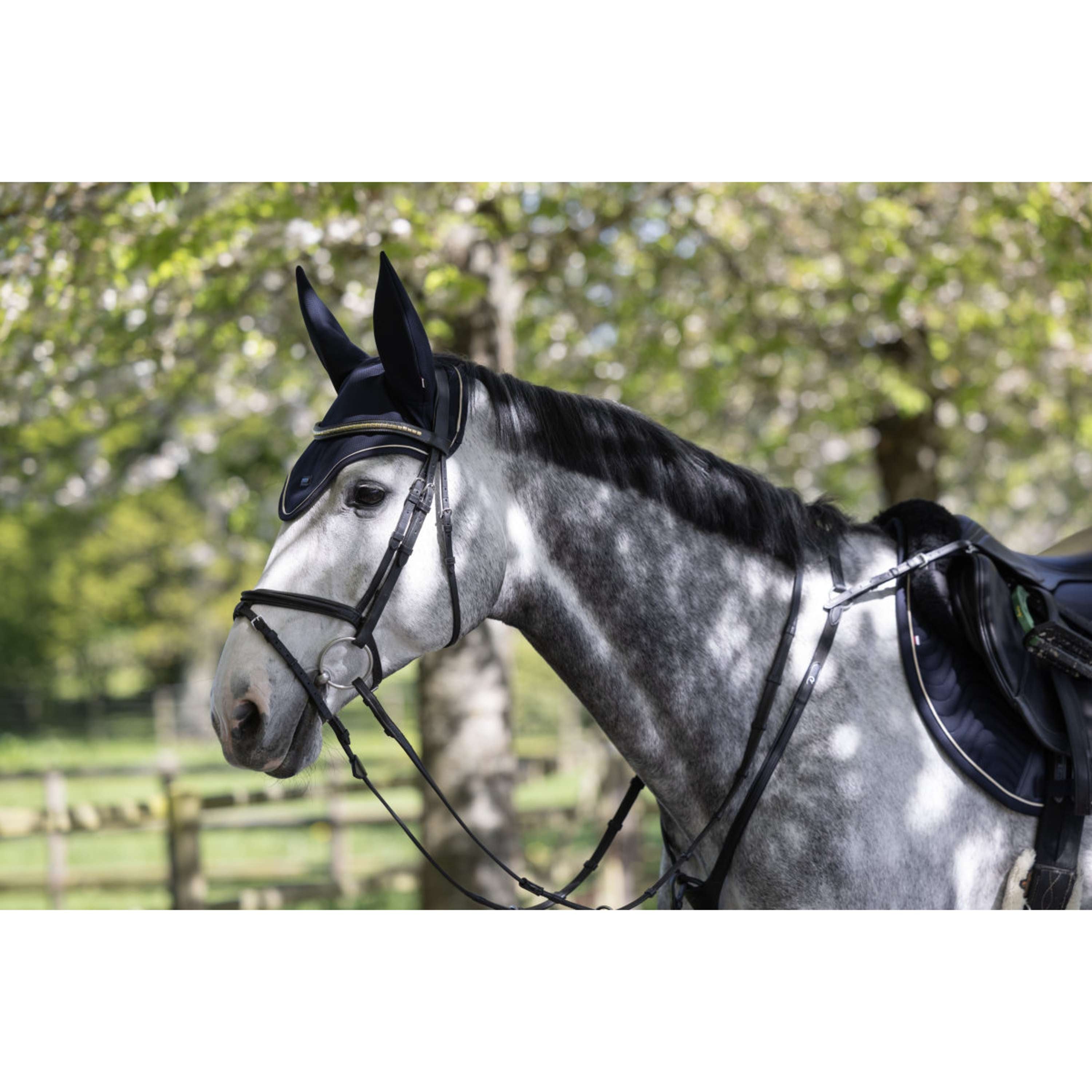 Conçu pour un confort optimal pendant les entraînements et compétitions, ce chapeau anti-mouches rafraîchissant régule activement la température et l’humidité, pour permettre à votre cheval de rester au frais et au sec même dans des conditions intenses. Ses propriétés assourdissantes limitent les bruits pouvant distraire votre monture : c’est l’idéal pour un cheval sensible, ou dans un environnement animé. Ses détails sophistiqués et ses matériaux haut de gamme rendent ce chapeau anti-mouches aussi élégant que fonctionnel.