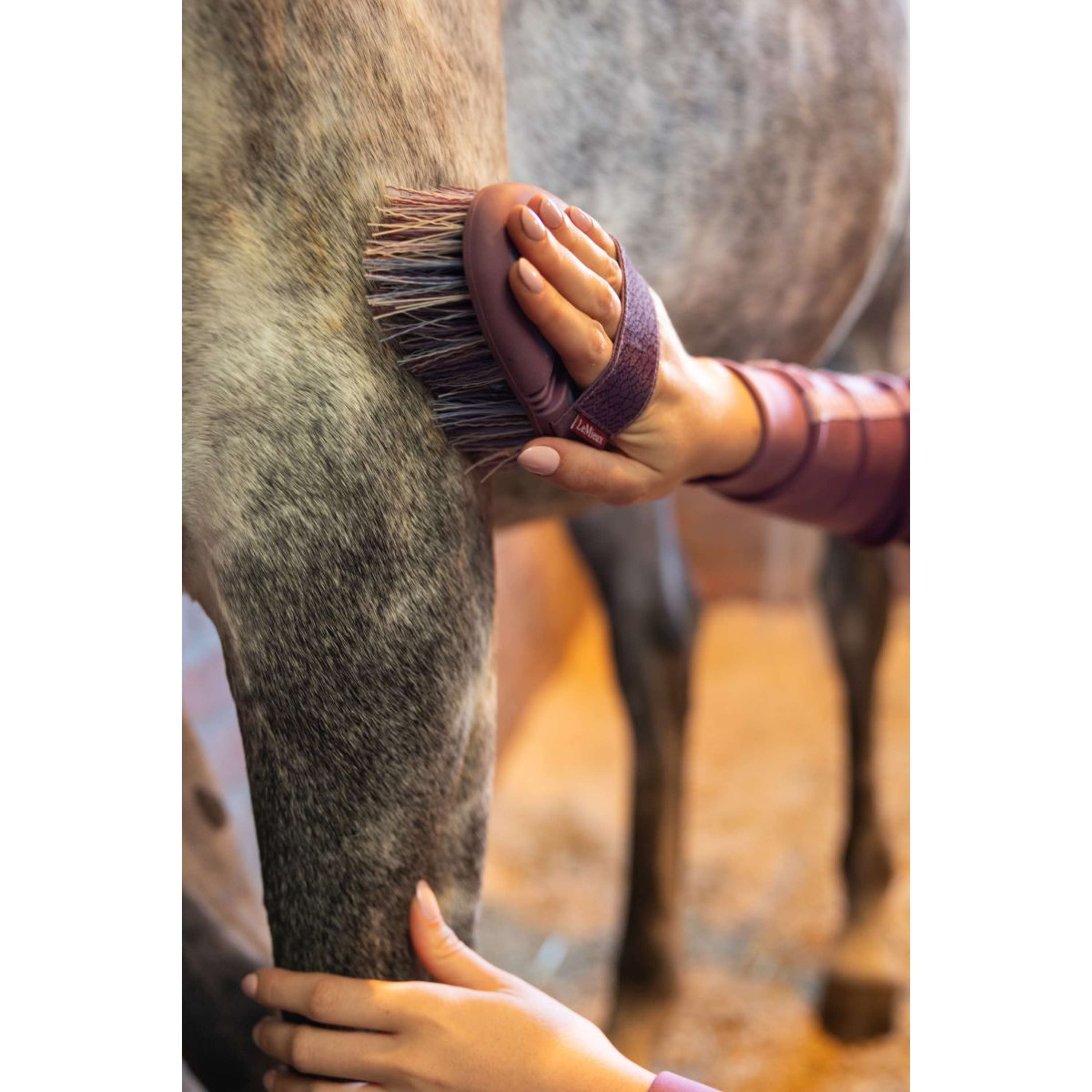 Une sangle élastique assure une prise en main sûre et confortable. Disponible dans des coloris de saison assortis à votre sac de toilettage et vos brosses SS26.