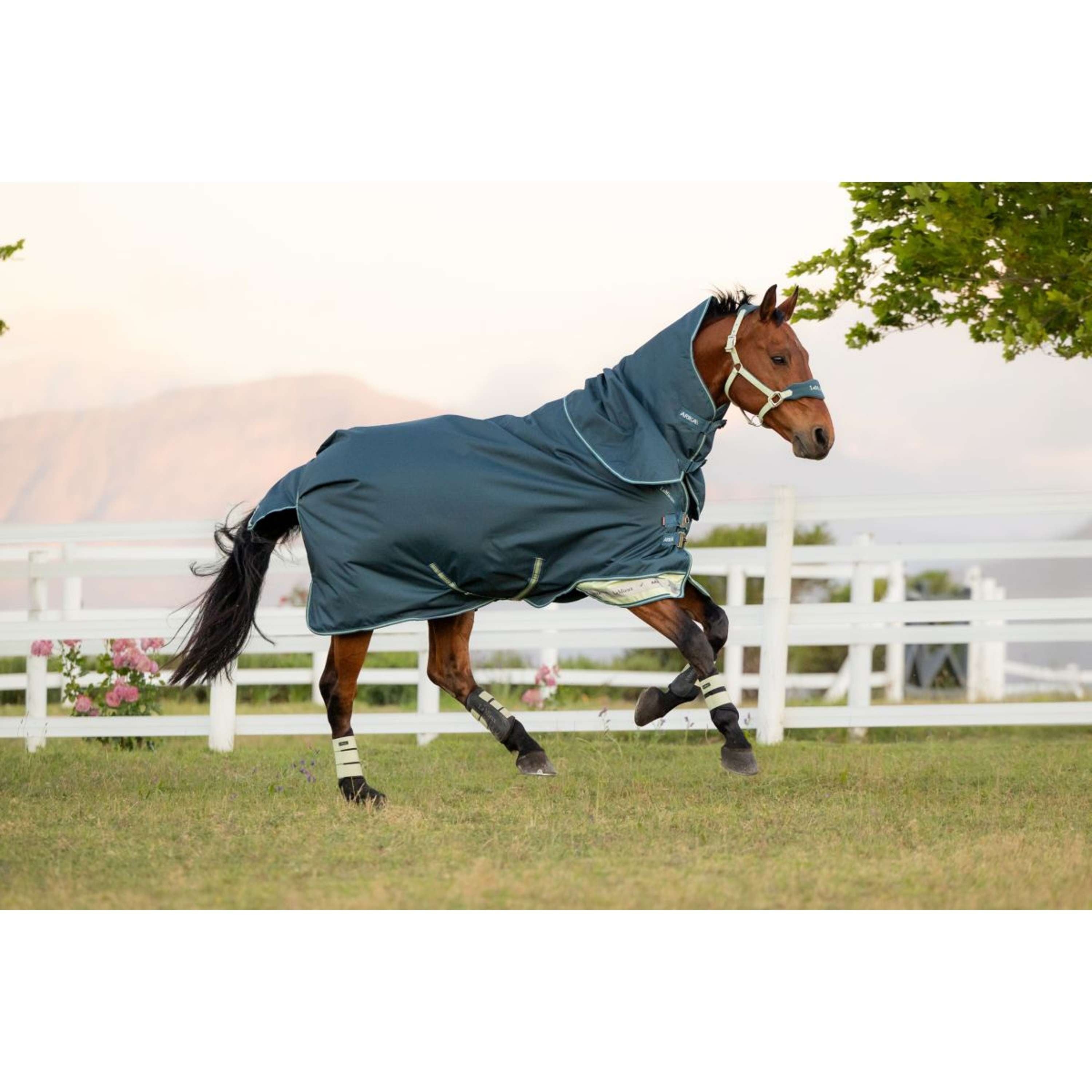 Apportez une touche de couleur à votre pâturage avec les couvertures d'extérieur Arika Ripstop. Cette couverture résistante et légère bénéficie de la même conception technique que nos couvertures Arika les plus vendues de la collection Turnout. Idéale pour la mi-saison, elle garde votre cheval confortable et au sec par temps humide. Le tissu extérieur ripstop 600 deniers, imperméable et respirant, est sans coutures à l'arrière pour éviter les infiltrations. Imperméable jusqu'à 10 mm, la couverture offre une respirabilité de 3000 MVP pour un confort optimal au pâturage. Le rembourrage antibactérien et antistatique aux épaules assure un bon ajustement et fait briller le pelage. La jupe en deux parties réduit la pression à l'ourlet pour une plus grande liberté de mouvement. La fermeture avant brevetée à 45° et le rembourrage antibactérien et antistatique aux épaules réduisent la pression sur le poitrail et les épaules, limitant ainsi les risques d'irritation et offrant au cheval une plus grande liberté de mouvement pour jouer et brouter. Vous pouvez choisir parmi différentes épaisseurs de rembourrage pour adapter la couverture aux besoins de votre cheval. Le rembourrage thermocollé ne se tasse pas et ne se déplace pas, même mouillé. Ses caractéristiques pratiques et techniques en feront votre nouvelle couverture préférée. Les détails réfléchissants améliorent la visibilité de votre cheval dans l'obscurité. Le cordon de queue recouvert de PVC est facile à nettoyer. Les sangles ventrales croisées maintiennent la couverture en place, et les sangles élastiques aux cuisses offrent un maintien optimal. Le système de doublure Arika vous permet d'ajuster facilement l'épaisseur de la couverture pour une utilisation par tous les temps. Fixez la doublure au dos et à l'encolure de la couverture Turnout et ajoutez le col pour une protection accrue.