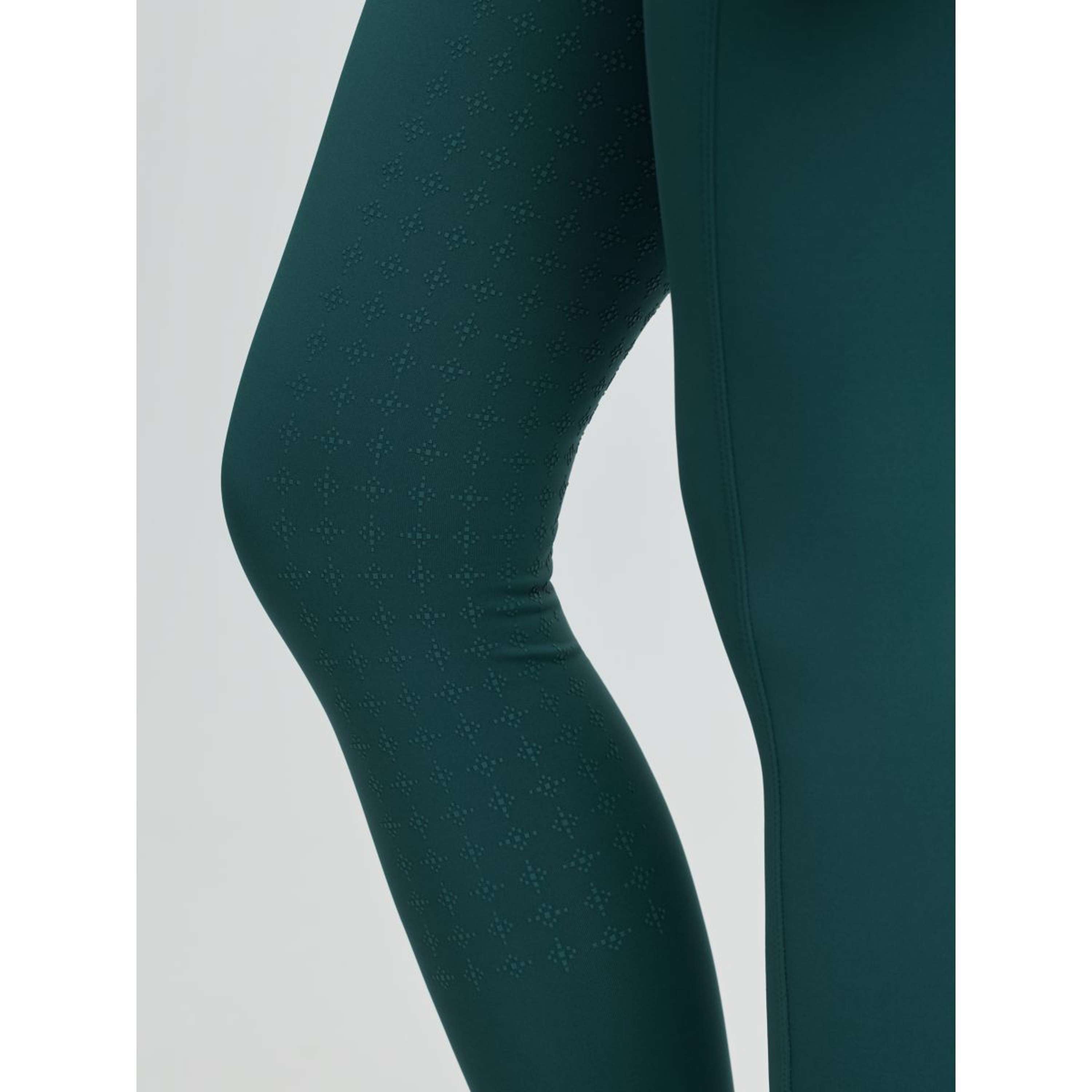 La conception sans coutures et le tissu extensible offrent une grande liberté de mouvement, tandis que la ceinture élastique garantit un maintien sûr et confortable. L'assise antidérapante assure une bonne adhérence en selle, et la coupe fuselée au bas des jambes réduit les points de pression sous les bottes pour un confort accru.