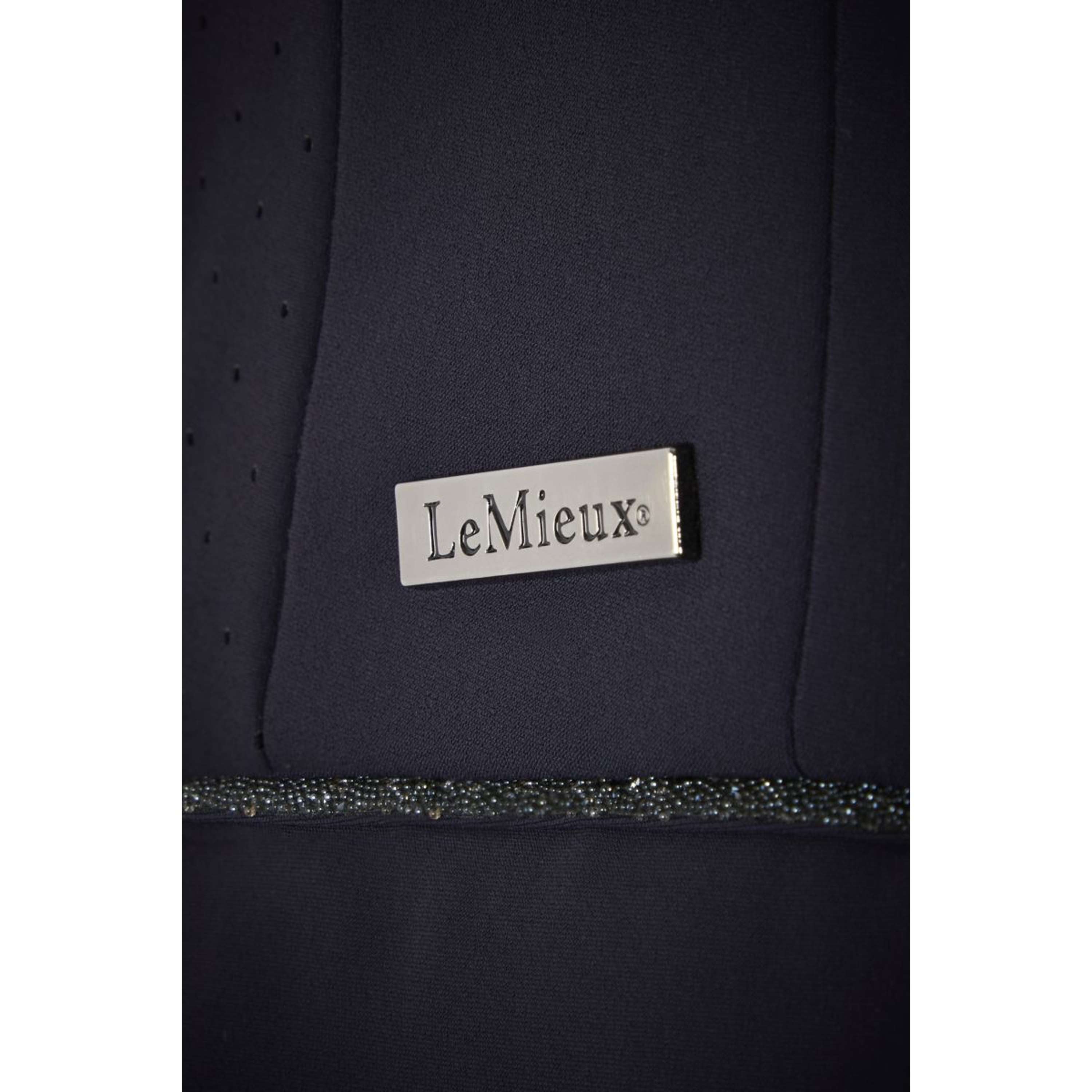 Les bordures en perles subtiles sur les poches et le panneau de ceinture arrière ajoutent une touche d'éclat. En plus, la fermeture éclair sur le devant, agrémentée d'un bouton-pression personnalisé LeMieux, donne une allure élégante et pratique.