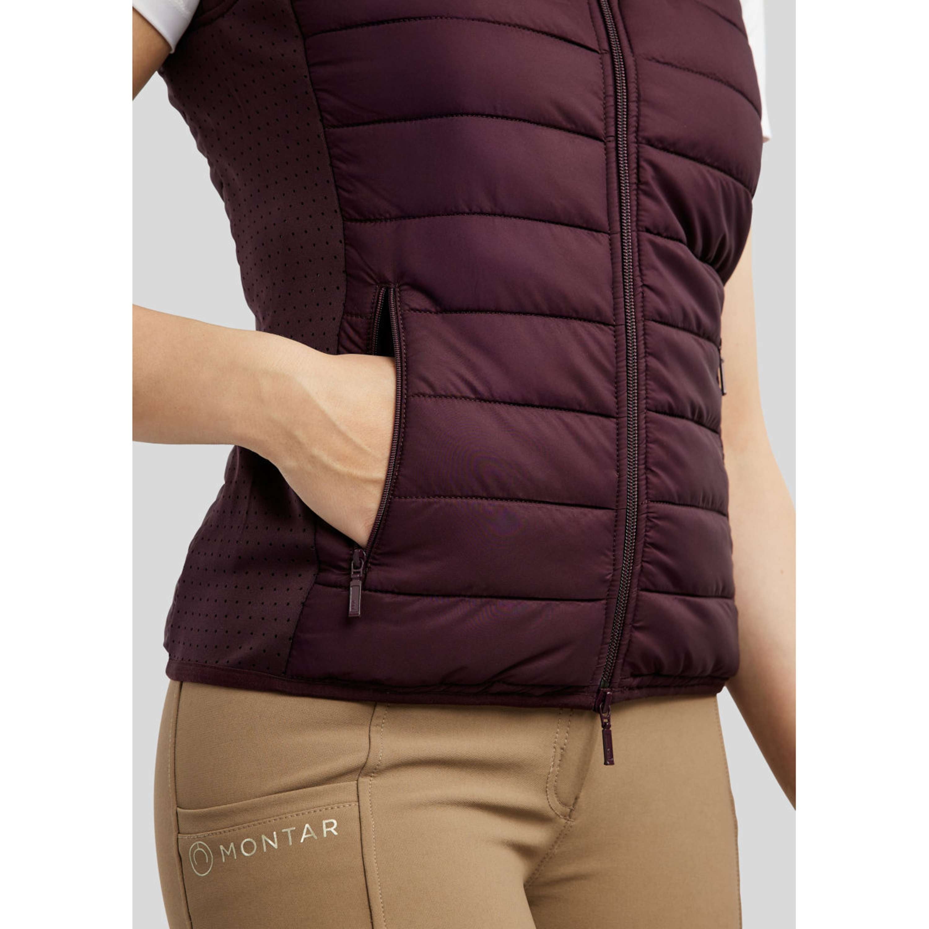 Le gilet présente un magnifique avant et dos matelassés combinés à des panneaux latéraux softshell souples pour une liberté maximale de mouvement. Sur la poitrine, Montar est écrit en petits et élégants cristaux couleur champagne, lui donnant une expression exclusive et féminine. Au niveau du cou, un logo en cristal assorti décore le col, complétant ainsi le look élégant.