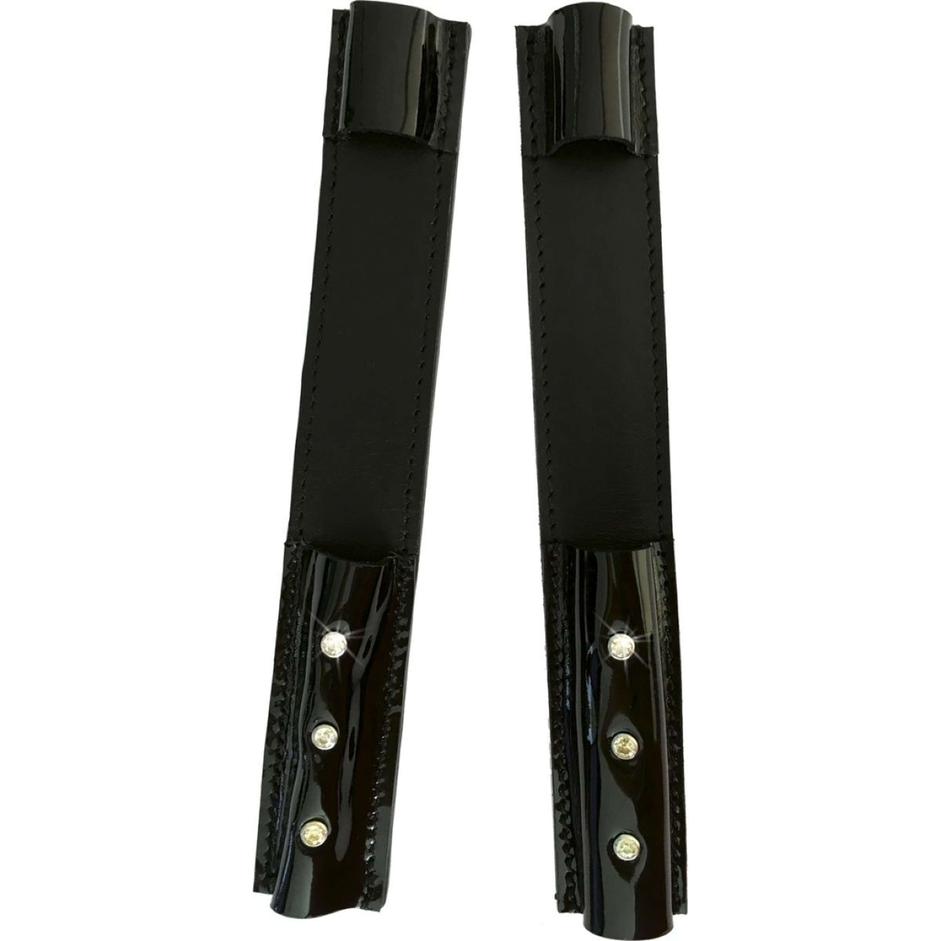 Cuir verni doublé, ces protections d'éperons offrent une durabilité impressionnante tout en apportant une petite touche de brillance grâce aux pierres en strass. Un accessoire qui ne manquera pas de faire sensation !