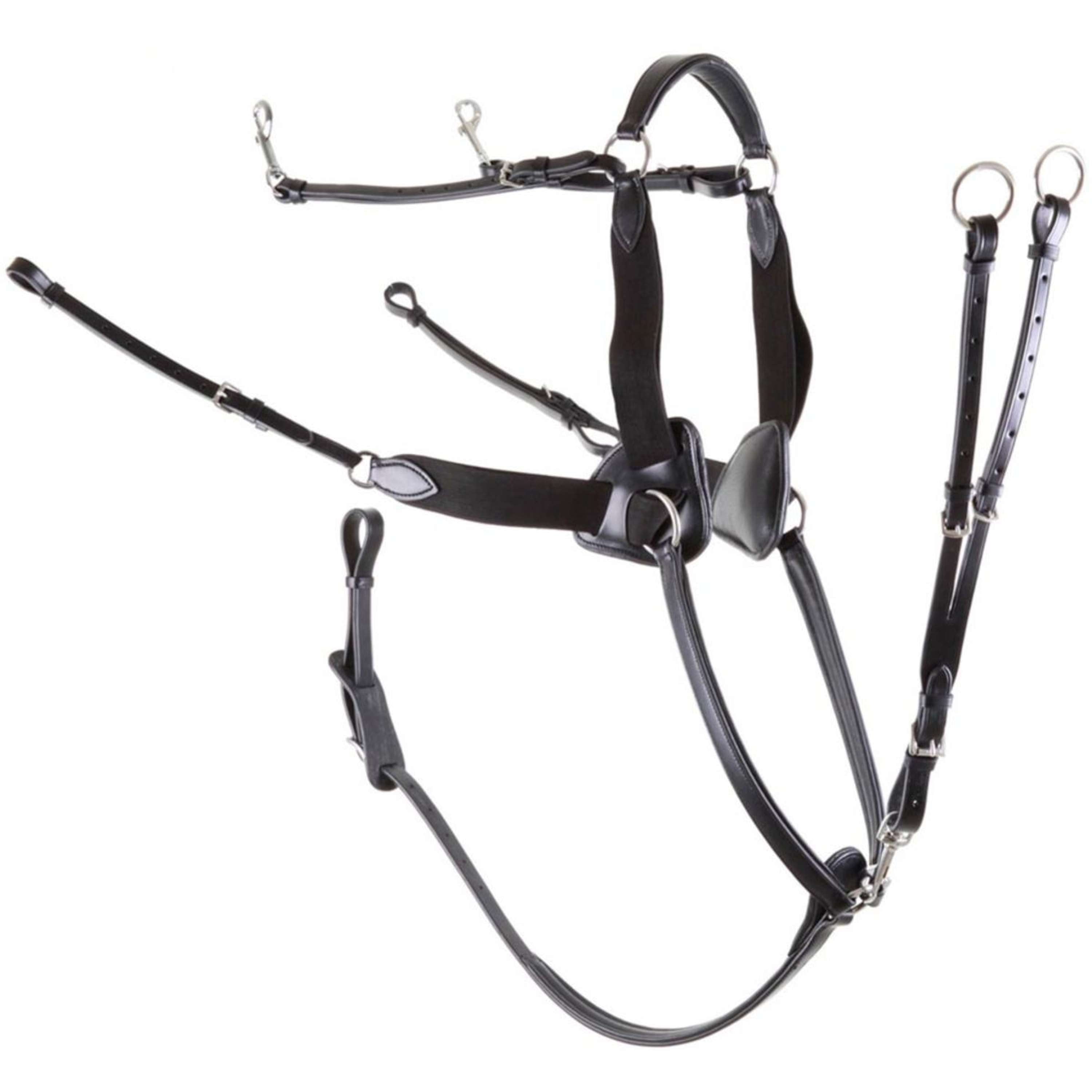 Les lanières en cuir réglables avec mousquetons se fixent facilement aux anneaux en D sur la selle, garantissant une stabilité accrue. Les coussinets triangulaires aux épaules offrent un confort supplémentaire à votre cheval, même lors des longues séances d'entraînement ou en compétition.