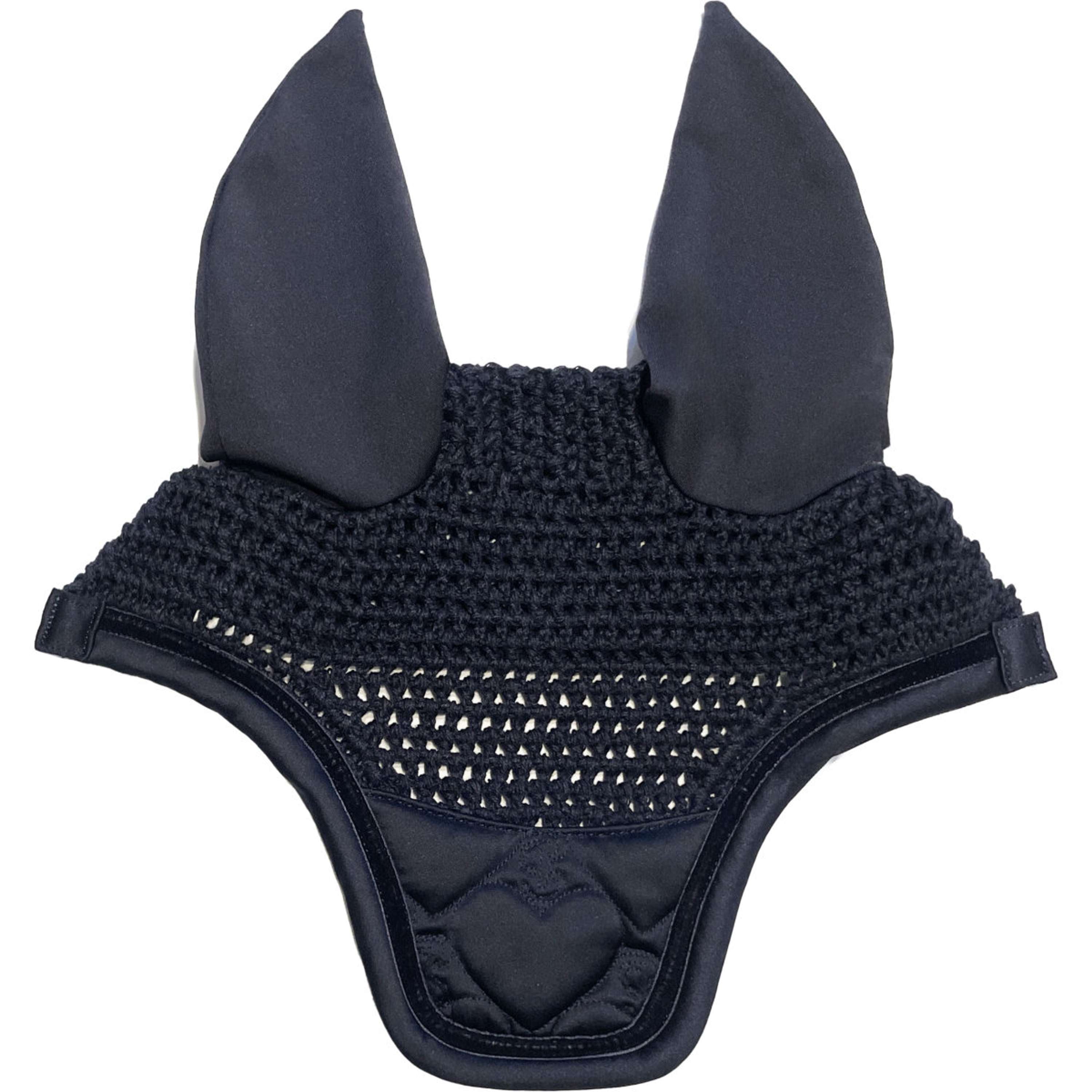 Bonnet d’oreilles au crochet avec un patchwork en cœur PS à l’avant et des oreilles élastiques pour le confort. Fermeture velcro pour la stabilité.