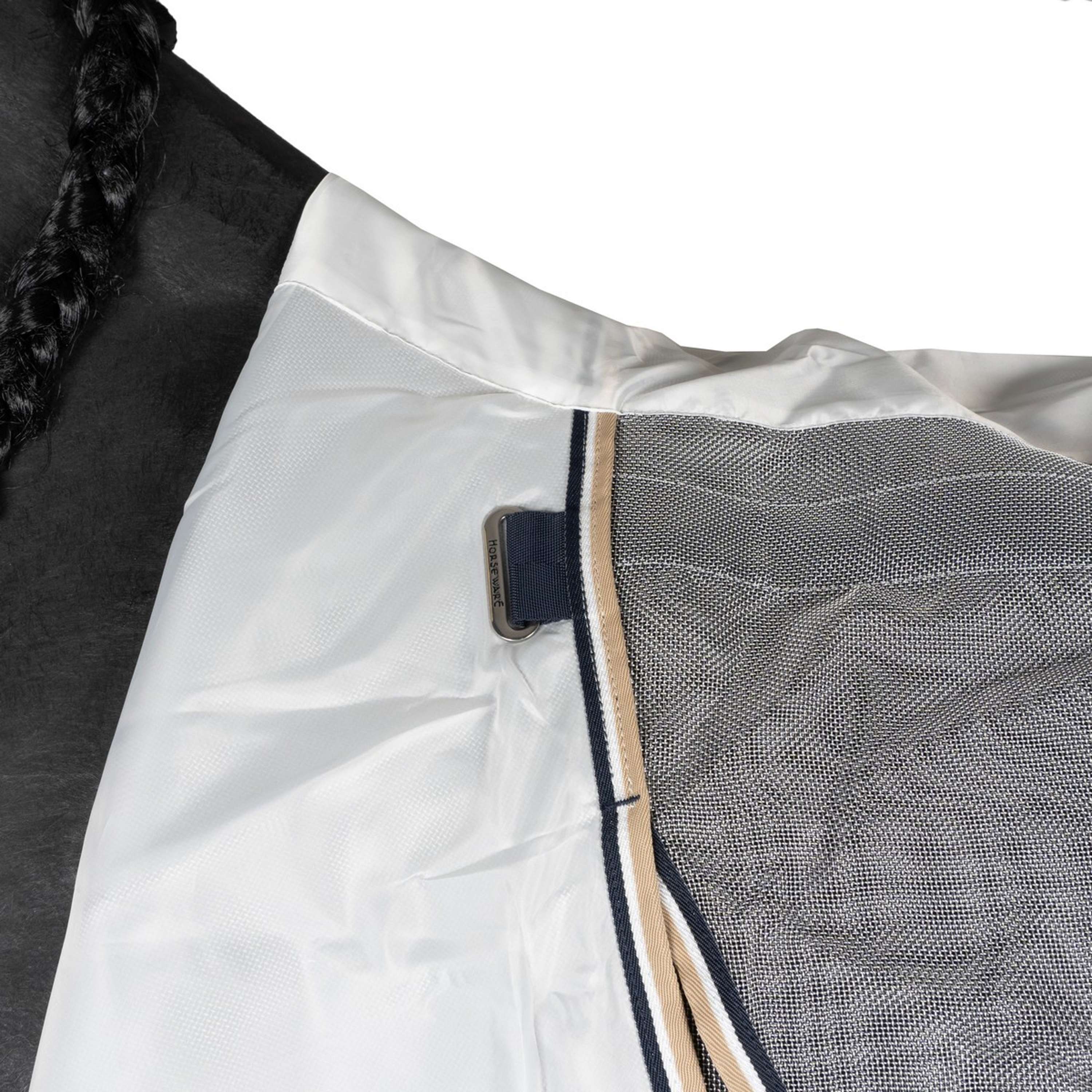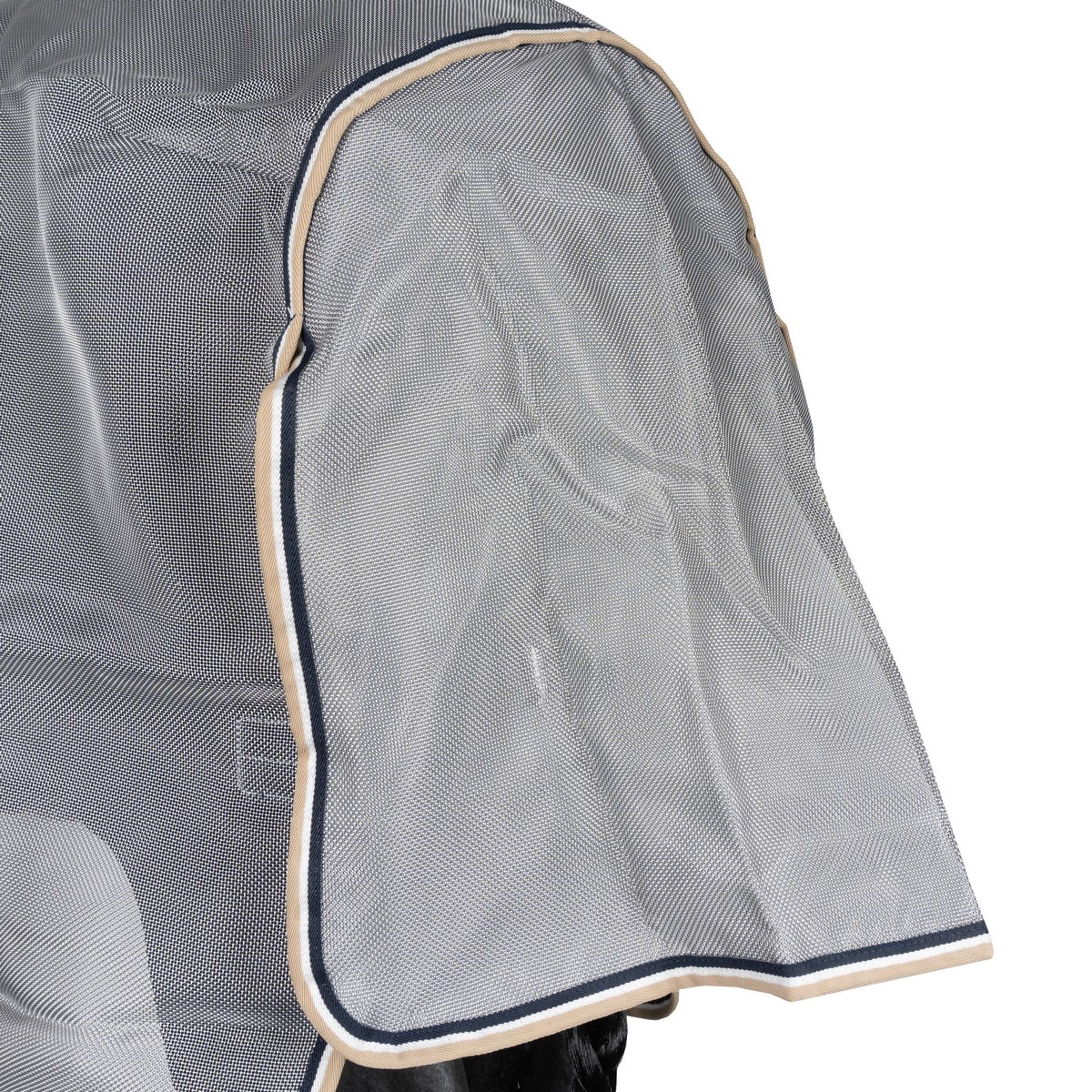 La fermeture en V sur le devant permet à votre cheval de brouter confortablement. Supprime la pression et empêche le frottement de l’épaule. La capuche intégrée offre une protection contre les insectes et les rayons UV.