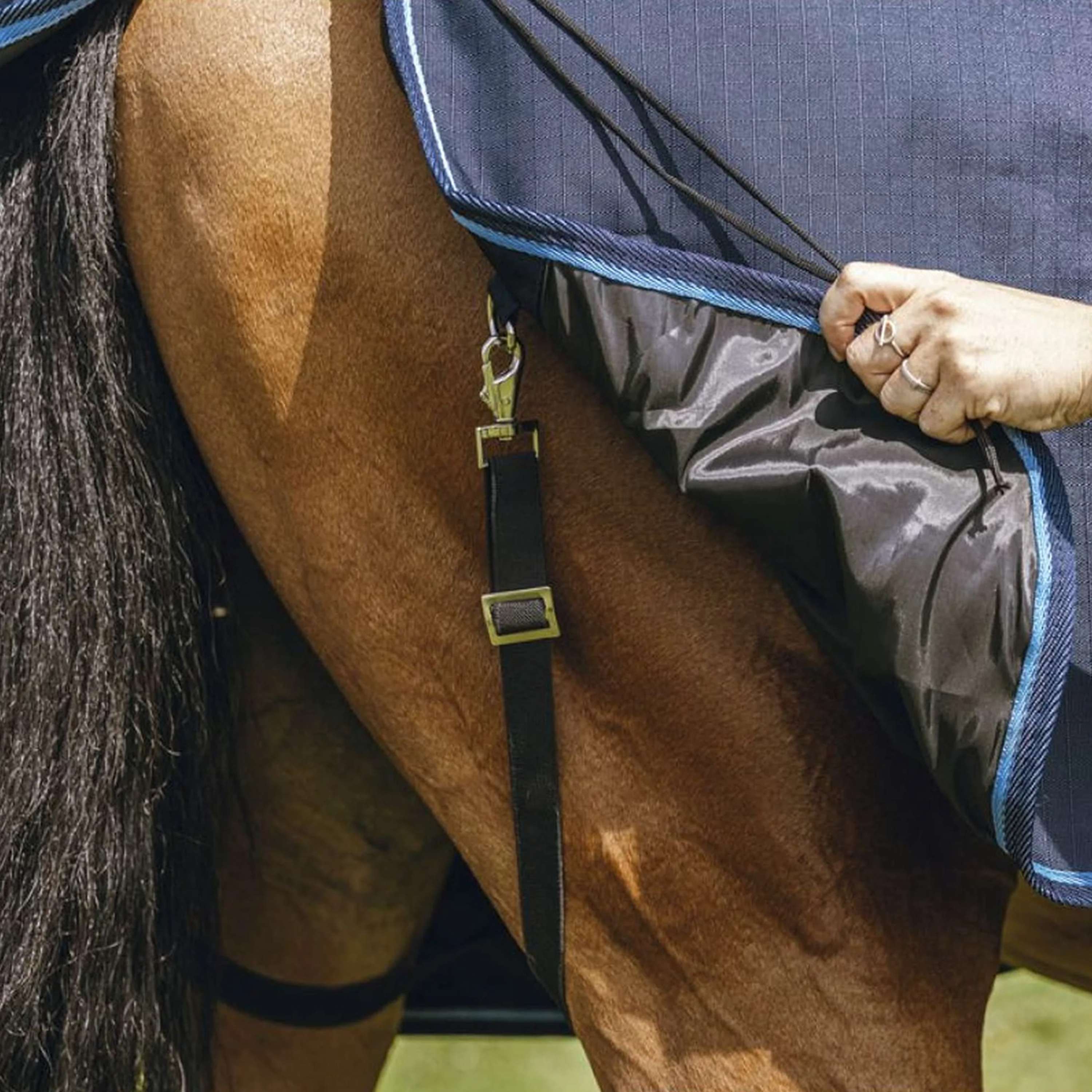 Avec ses boucles solides et ajustables, cette couverture reste bien en place. Facile à mettre et à enlever, c’est l’accessoire parfait pour simplifier ta routine quotidienne avec ton cheval.