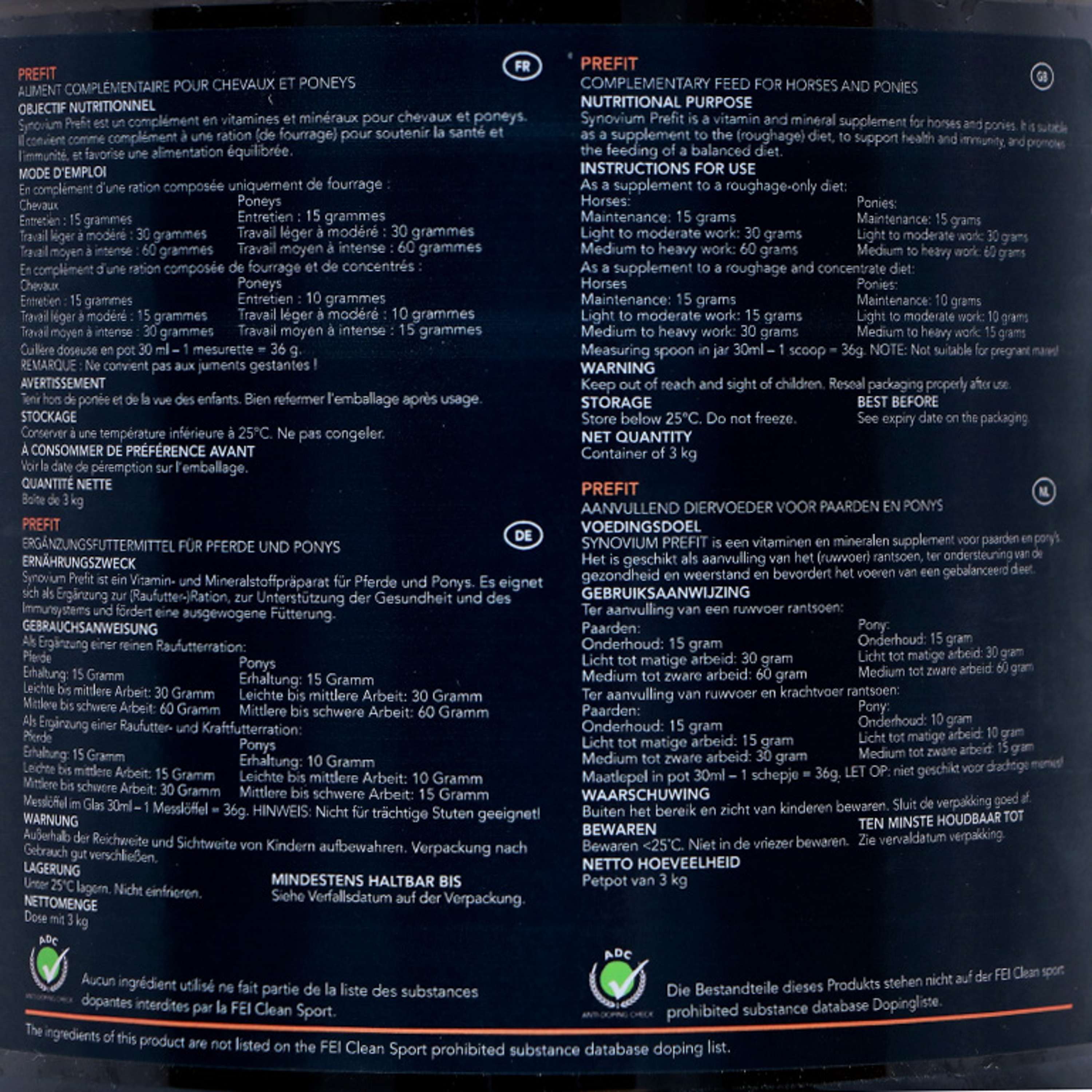 Prefit fournit toutes les vitamines, minéraux et antioxydants nécessaires pour répondre aux besoins nutritionnels du cheval en matière de santé et de performance. Ajouter ce supplément équilibré permet d’assurer une ration complète.