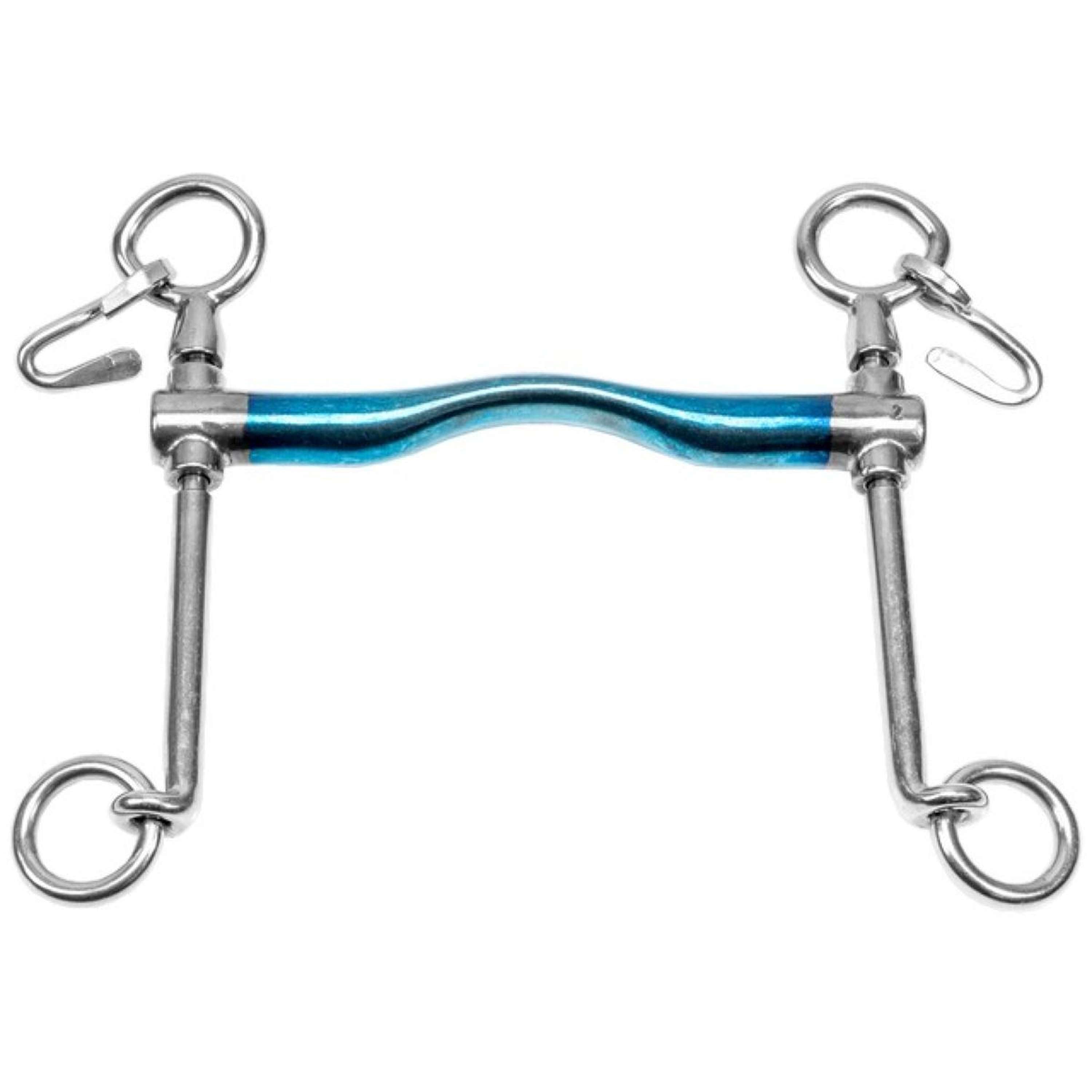 Voici le mors Sweet Iron par Trust, reconnu pour sa couleur bleue originale. En contact avec l'humidité, une légère oxydation se forme, donnant une saveur sucrée qui stimule naturellement la production de salive chez le cheval. Cette salivation accrue aide votre cheval à accepter le mors plus facilement. Bien que la couleur bleue initiale puisse changer en brun-gris au fil du temps, ce phénomène est tout à fait normal pour ces mors Sweet Iron. Si vous ne l'utilisez pas pendant un certain temps, une petite couche de rouille peut apparaître, mais pas de souci, un simple chiffon humide suffit pour la nettoyer.