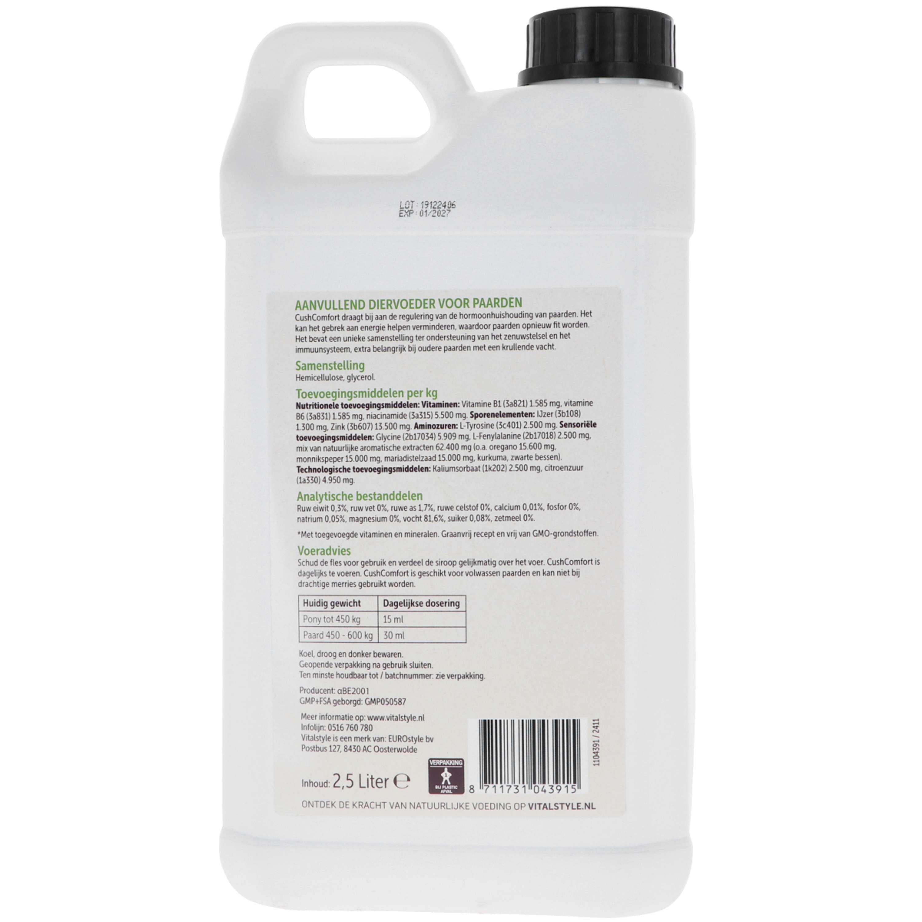 En complément de CushComfort, les chevaux âgés souffrant de déséquilibres hormonaux bénéficient également d'une alimentation riche en protéines. Cela contribue au maintien de la masse musculaire. Par conséquent, combinez CushComfort avec le muesli Vitalstyle Senior & Balance ou le mélange de fourrage Soft & Fiber. Ceci peut être complété par Vitalstyle OerBalans pour un fonctionnement optimal du système immunitaire.