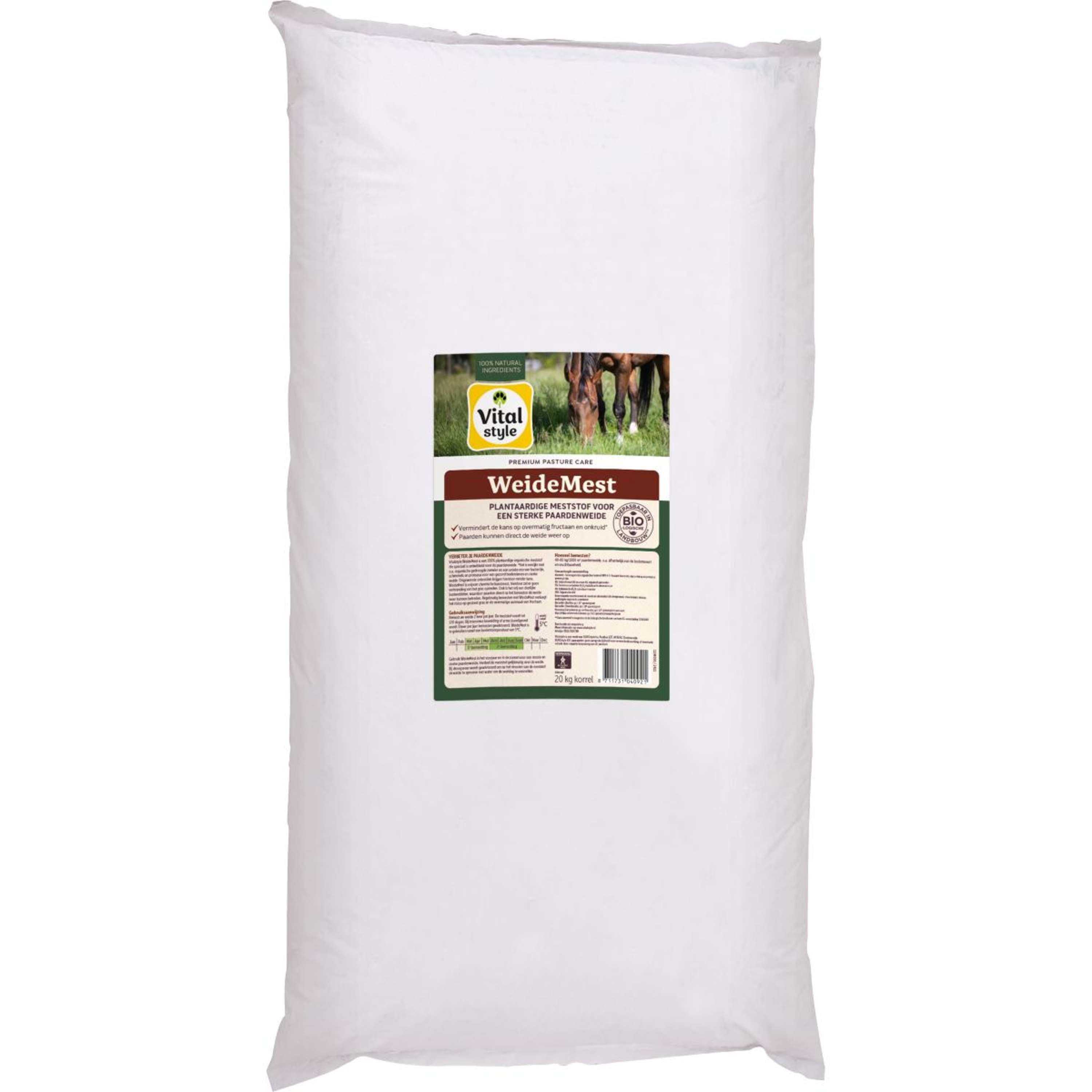 VITALstyle WeideMest est un engrais organique 100 % végétal spécialement conçu pour les pâturages pour chevaux. Enrichi, entre autres, d'algues séchées biologiques et d'un mélange unique de bactéries, de champignons et de protozoaires, il favorise la santé du sol et un pâturage vigoureux. Il réduit ainsi la croissance des mauvaises herbes. WeideMest est exempt d'engrais chimiques, ce qui prévient les brûlures de l'herbe. Il est également exempt d'ingrédients d'origine animale, ce qui permet aux chevaux de retourner au pâturage immédiatement après la fertilisation. Une fertilisation régulière avec WeideMest réduit le risque de stress de l'herbe et de production excessive de fructane.
