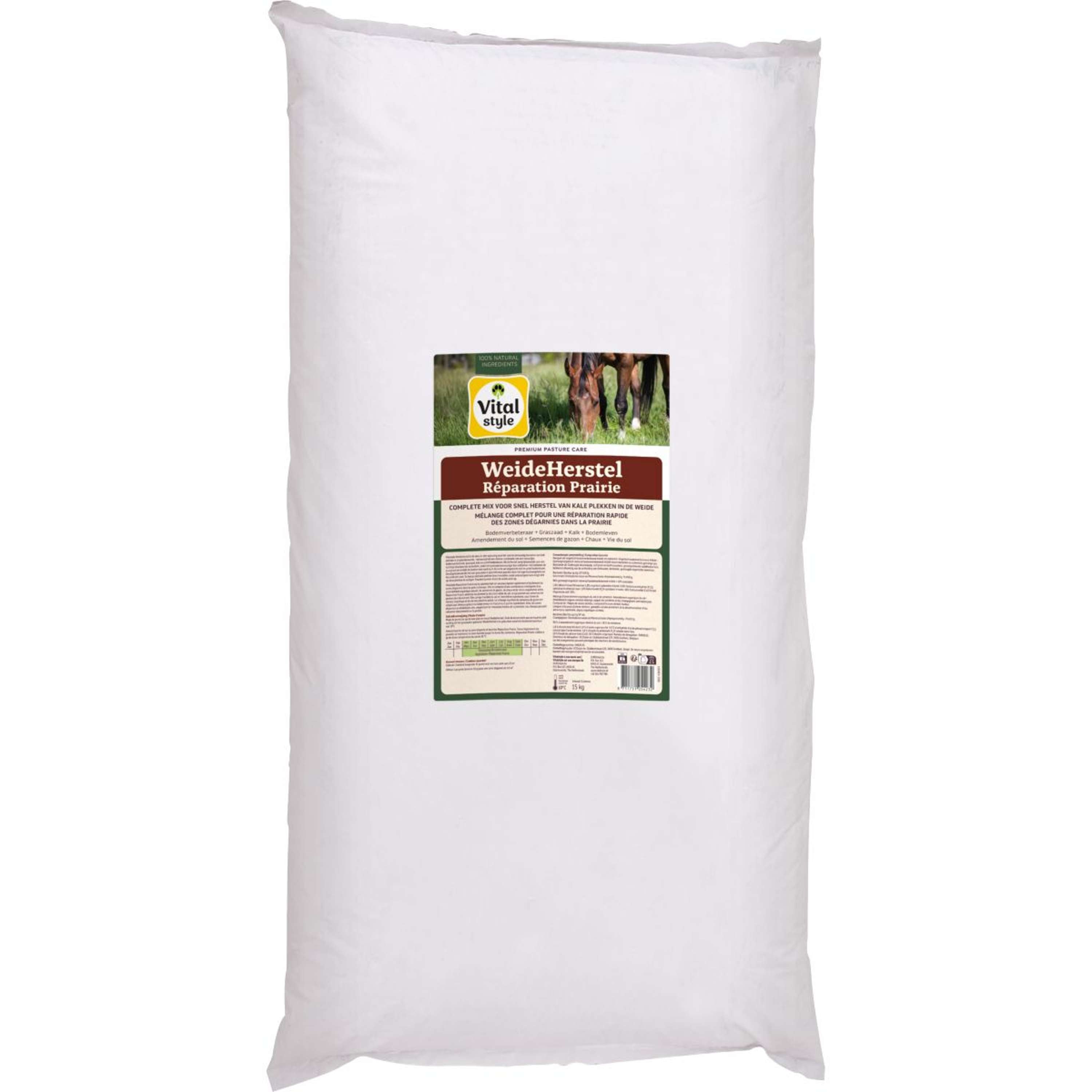 Vitalstyle Pasture Restoration est la solution tout-en-un pour restaurer rapidement et facilement les zones chauves dans le pâturage pour chevaux. Il se compose d’une combinaison intelligente d’un améliorant naturel du sol, de semences d’herbe, de chaux et de vie active dans le sol. WeideHerstel (localement) assure une structure aérienne du sol, afin que les graines d’herbe puissent germer plus facilement. Il améliore l’acidité et enrichit le sol en nutriments sous forme de matière organique et en vie active du sol. Le mélange équilibré de graines d’herbe convient aux chevaux en raison de sa faible teneur en fructes et il germe rapidement. Ainsi, vous pouvez rapidement réparer les zones nues afin que les mauvaises herbes n’aient pas le temps de s’y implanter. C’est facile à utiliser et les chevaux peuvent retourner immédiatement au pâturage !