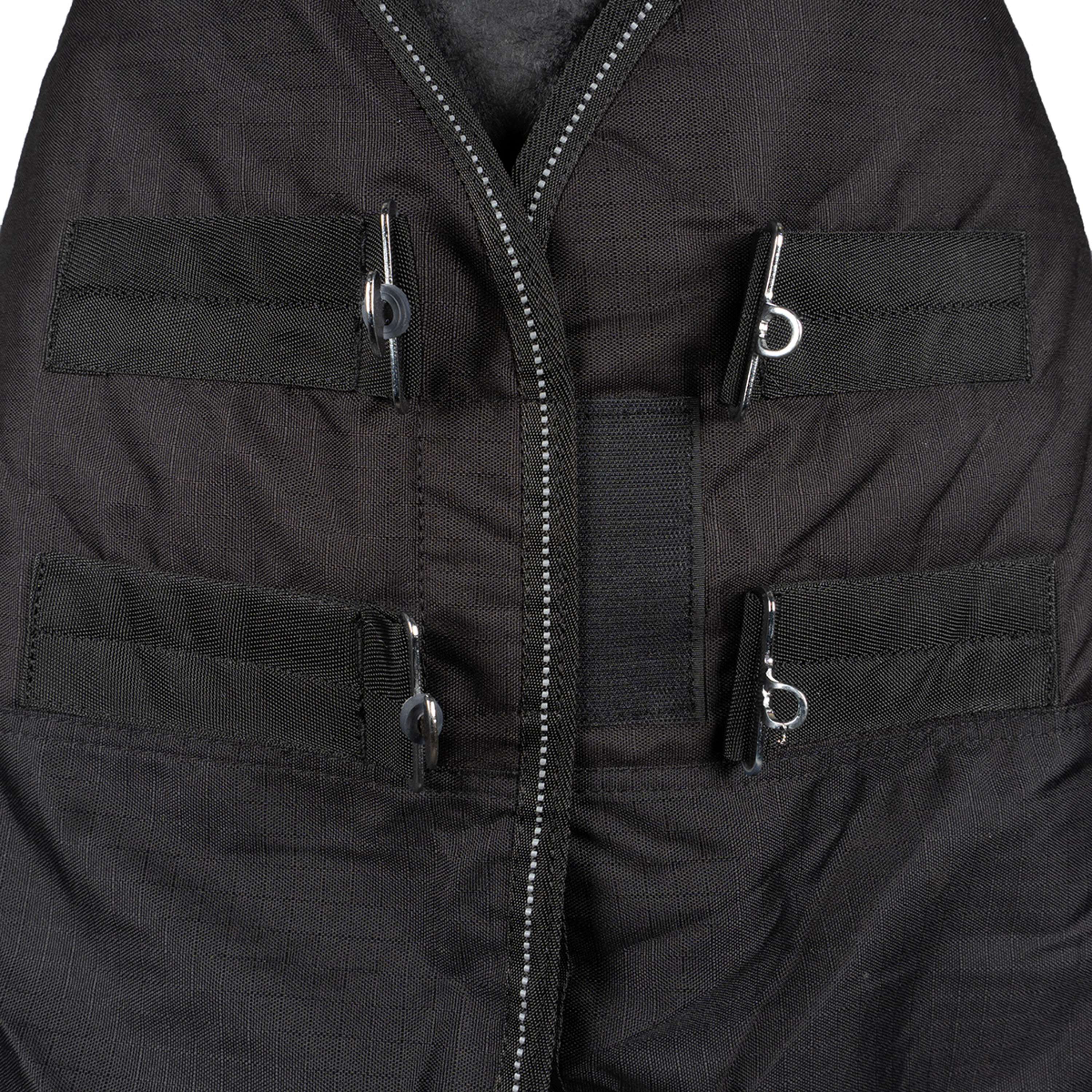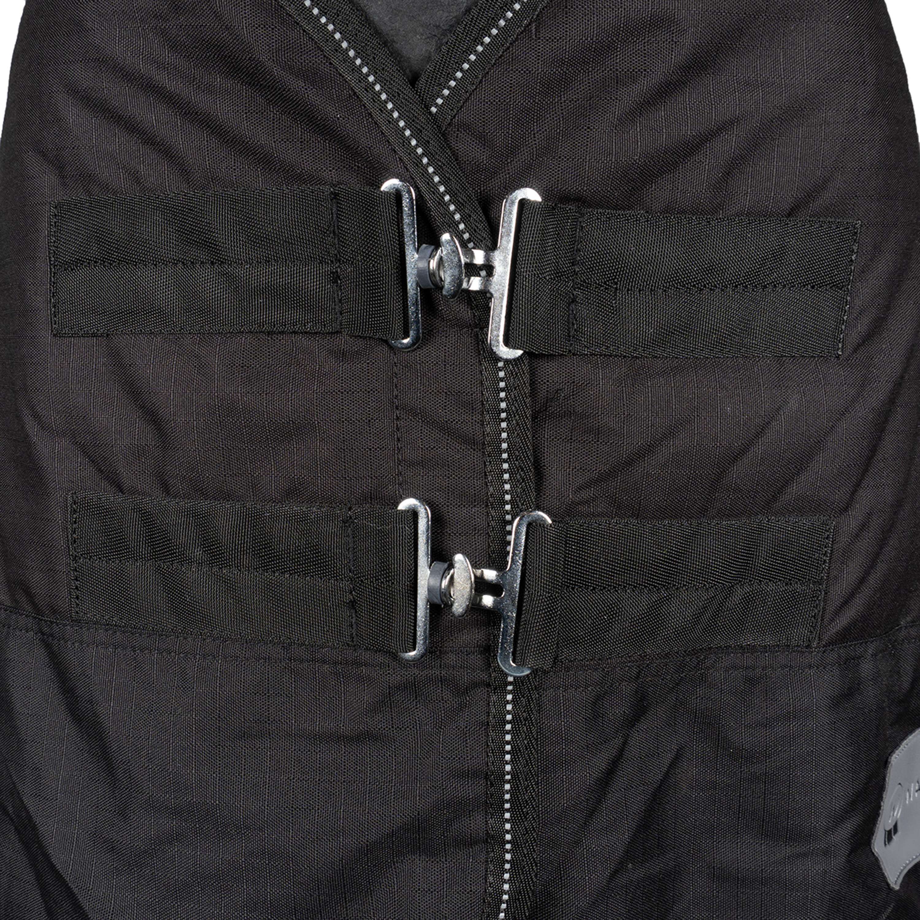 Grâce à sa conception pratique, mettre ou enlever cette couverture est un jeu d'enfant. Votre cheval sera prêt à affronter les intempéries en un rien de temps.