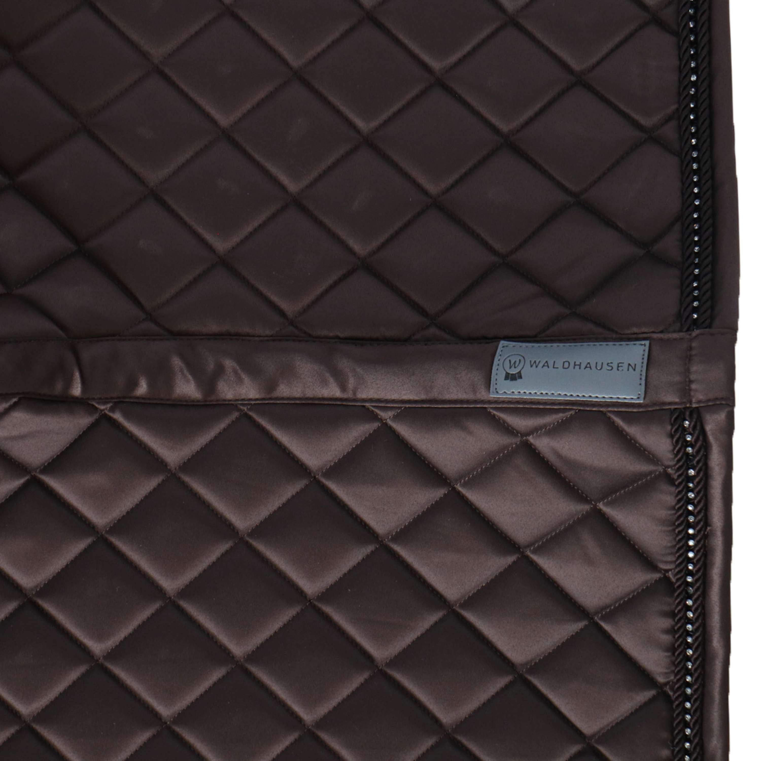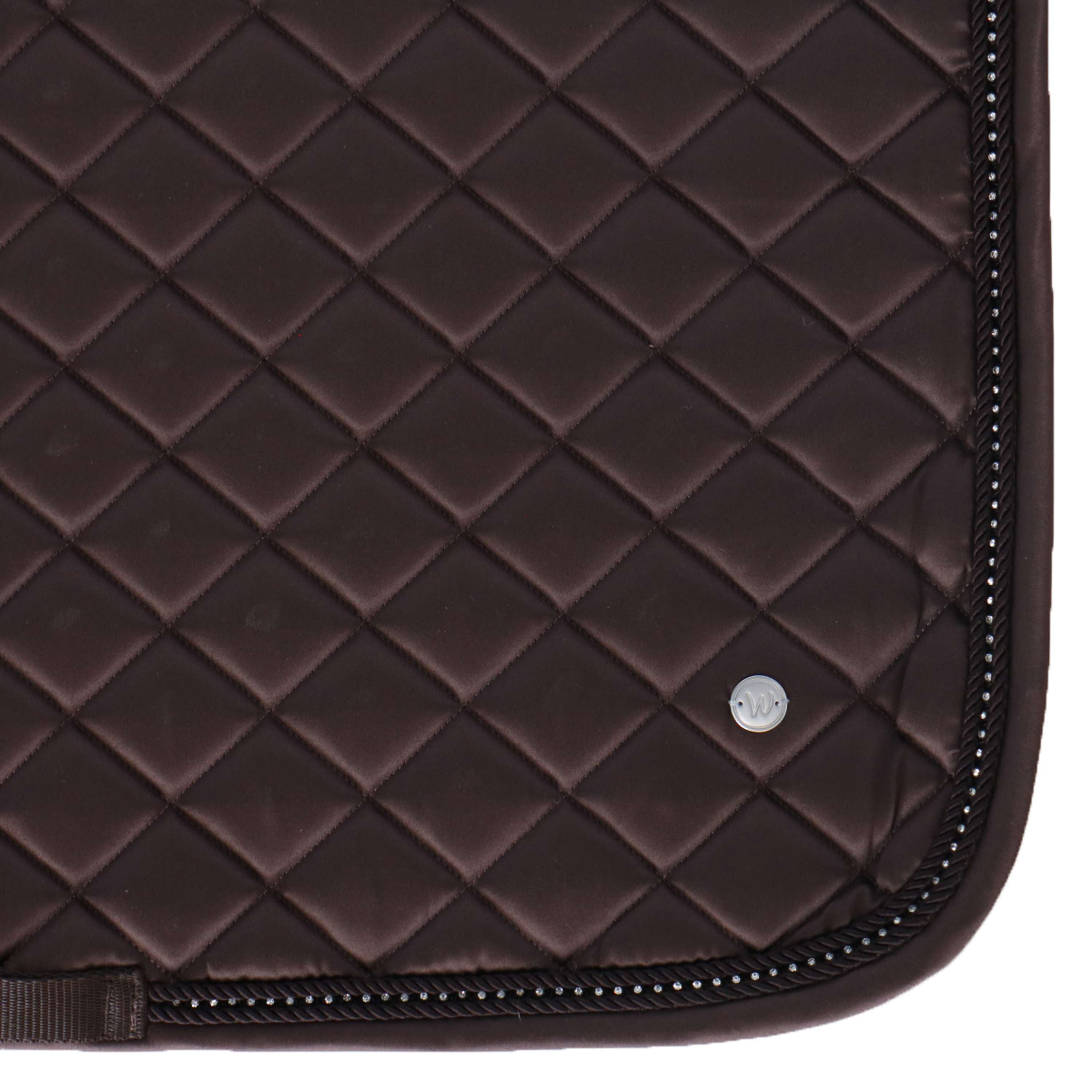 Tapis de selle élégant et de qualité en matériau brillant. Un détail particulier est la bande de strass scintillante entre deux cordons décoratifs. Le logo prend la forme d’une plaque de métal argenté. Assorti à notre collection Népal.
