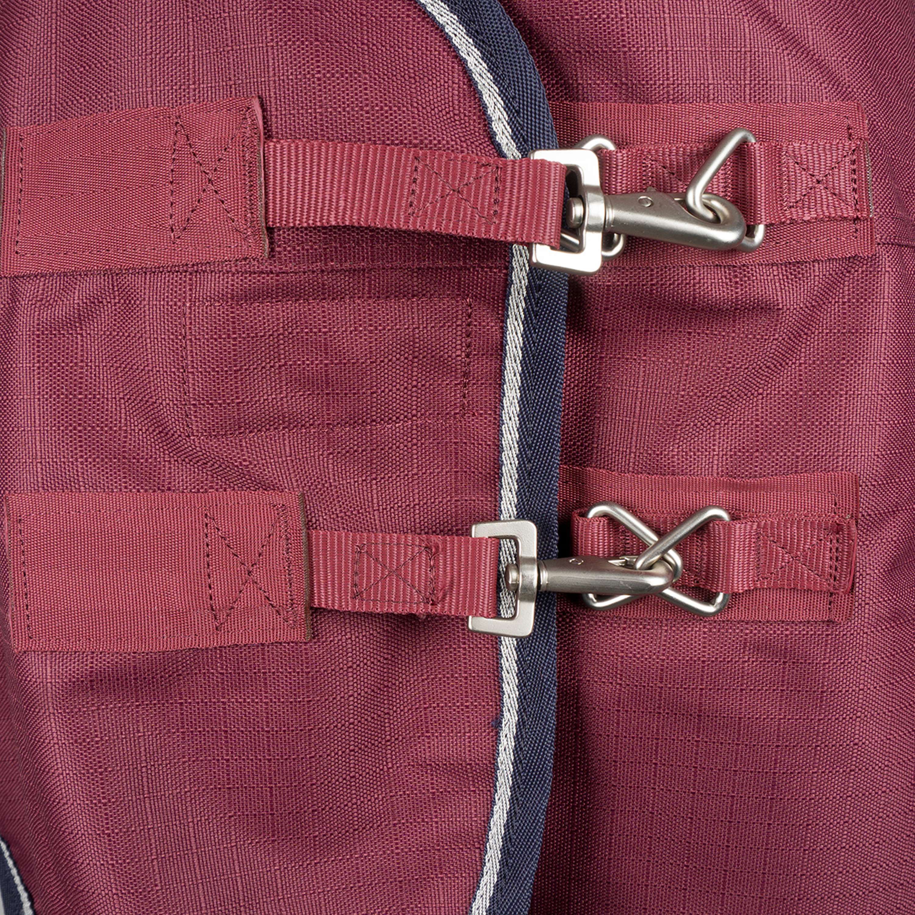 • Haute visibilité : Les bandes réfléchissantes et le marquage améliorent la visibilité, facilitant le repérage de votre cheval la nuit. La jauge de température et le badge denier aident à identifier le garnissage de la couverture.