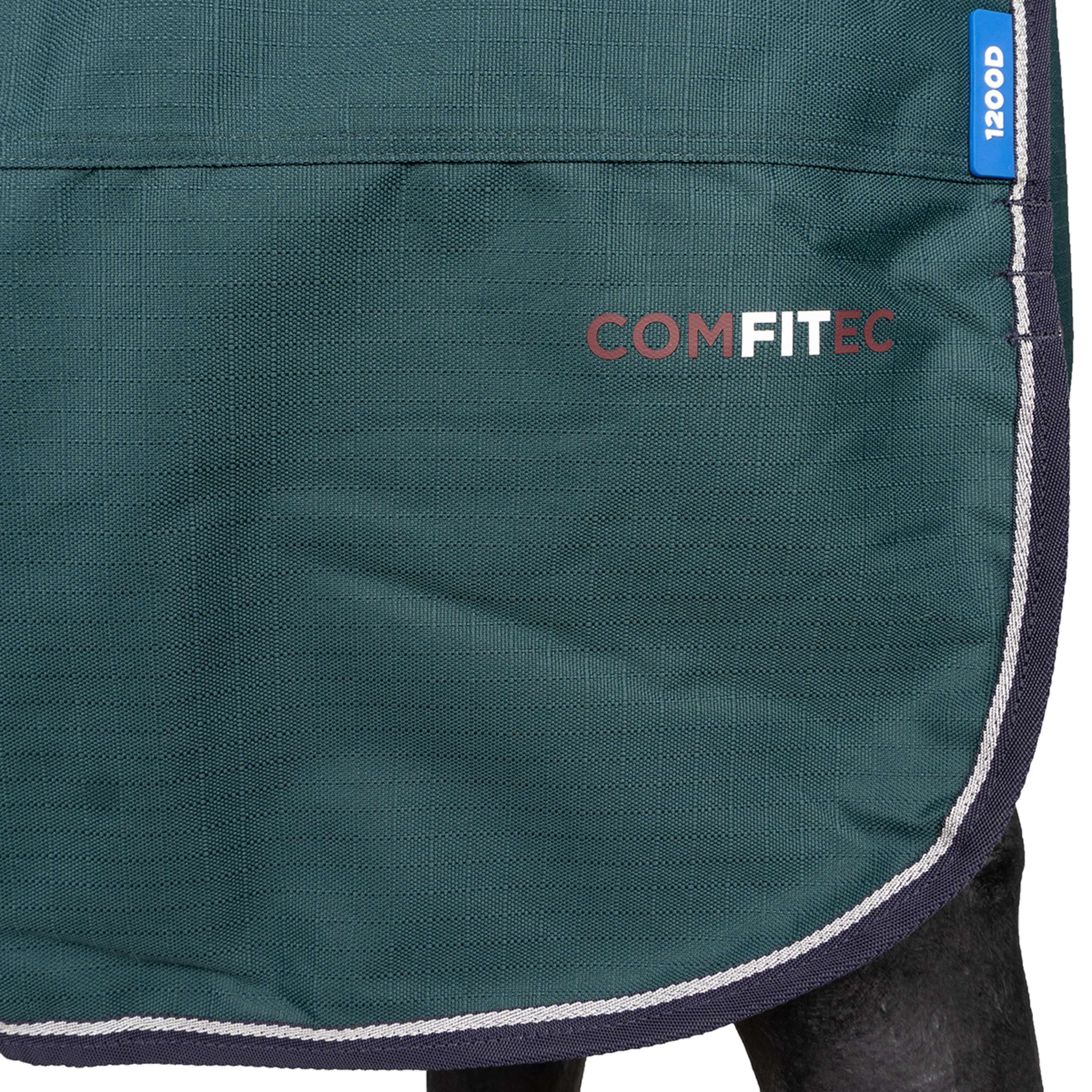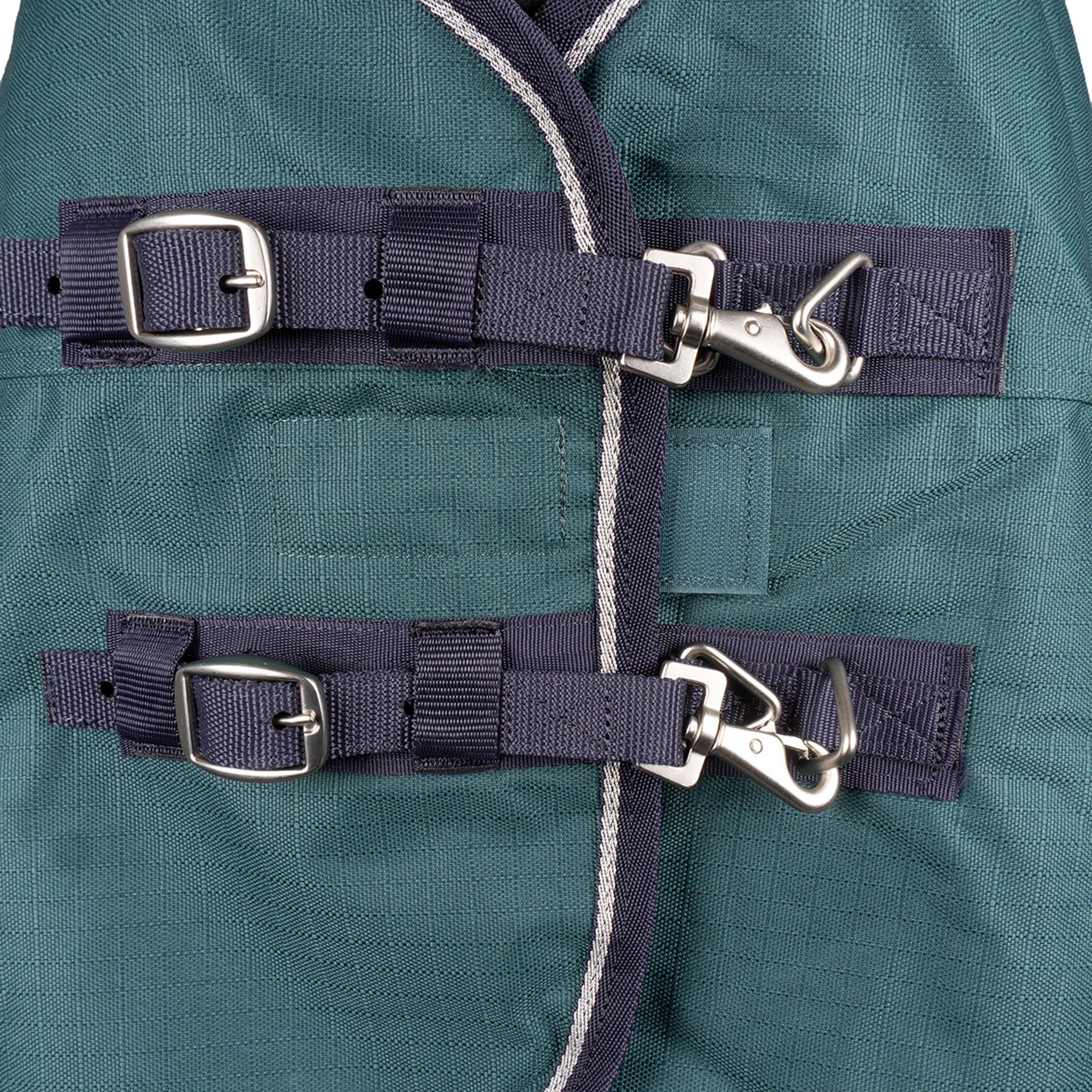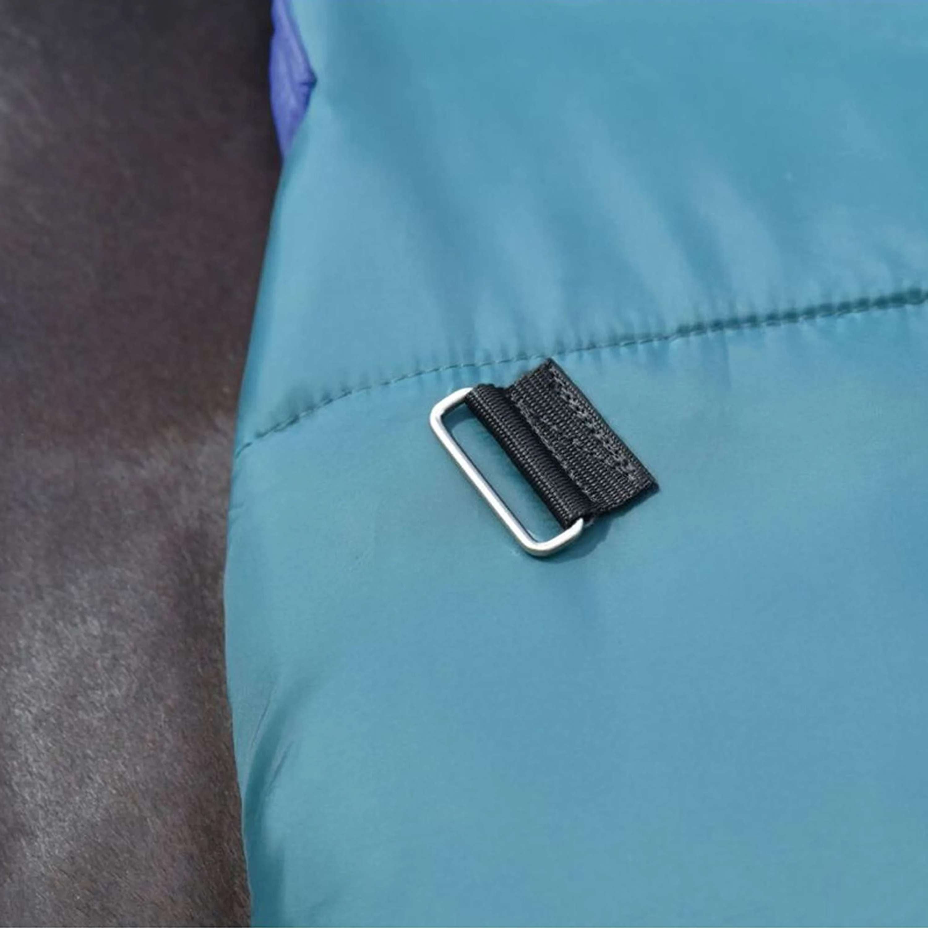 • Ajustement sûr : fourni via des sangles de jambe réglables et amovibles, ainsi qu'un rabat de queue enveloppant complet avec une conception en 3 pièces, qui enveloppe les quartiers du cheval pour une protection ultime contre les intempéries
